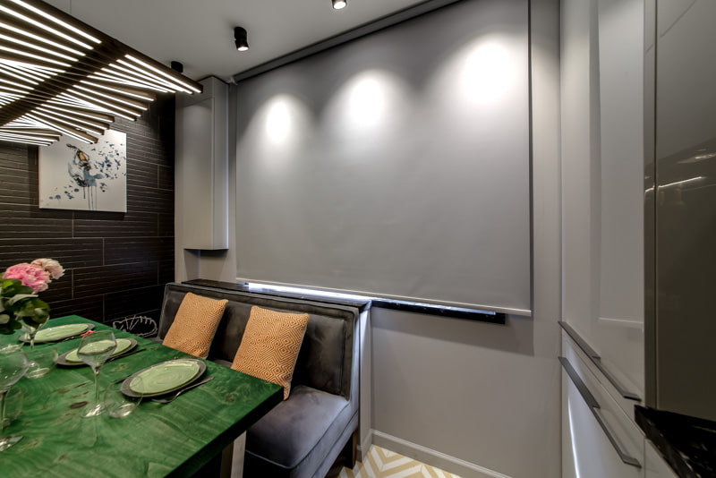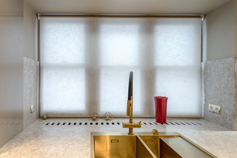 Een praktische en visueel aantrekkelijke oplossing voor keukenramen zijn rolluiken. Deze versie van het decor is een stoffen doek die is bevestigd aan een speciale houder en kettingmechanisme. Met dit laatste kun je het canvas omhoog en omlaag brengen en in een rol vouwen. Het artikel onthult alle spannende vragen over rolluiken in de keuken met een foto.