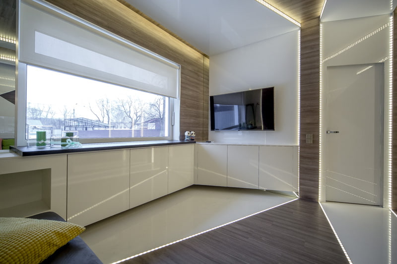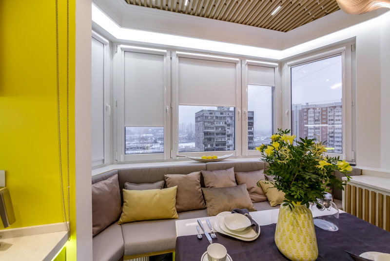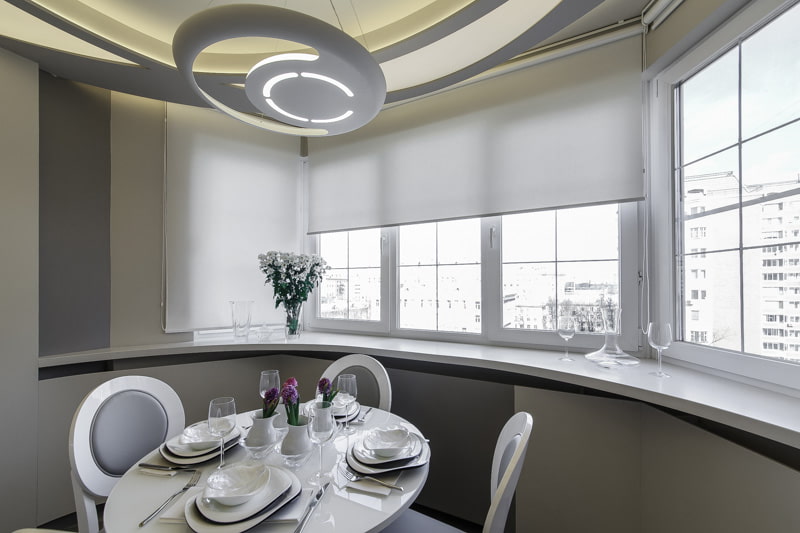 - Compact formaat. De gedraaide staat van het canvas neemt niet veel ruimte in beslag en tast de externe perceptie van de kamer niet aan. Er zijn variaties van bijna onmerkbare ontwerpen. Door het gebruik ervan kunt u ruimte op de vensterbank vrijmaken voor bloemen en andere decoratieve elementen.