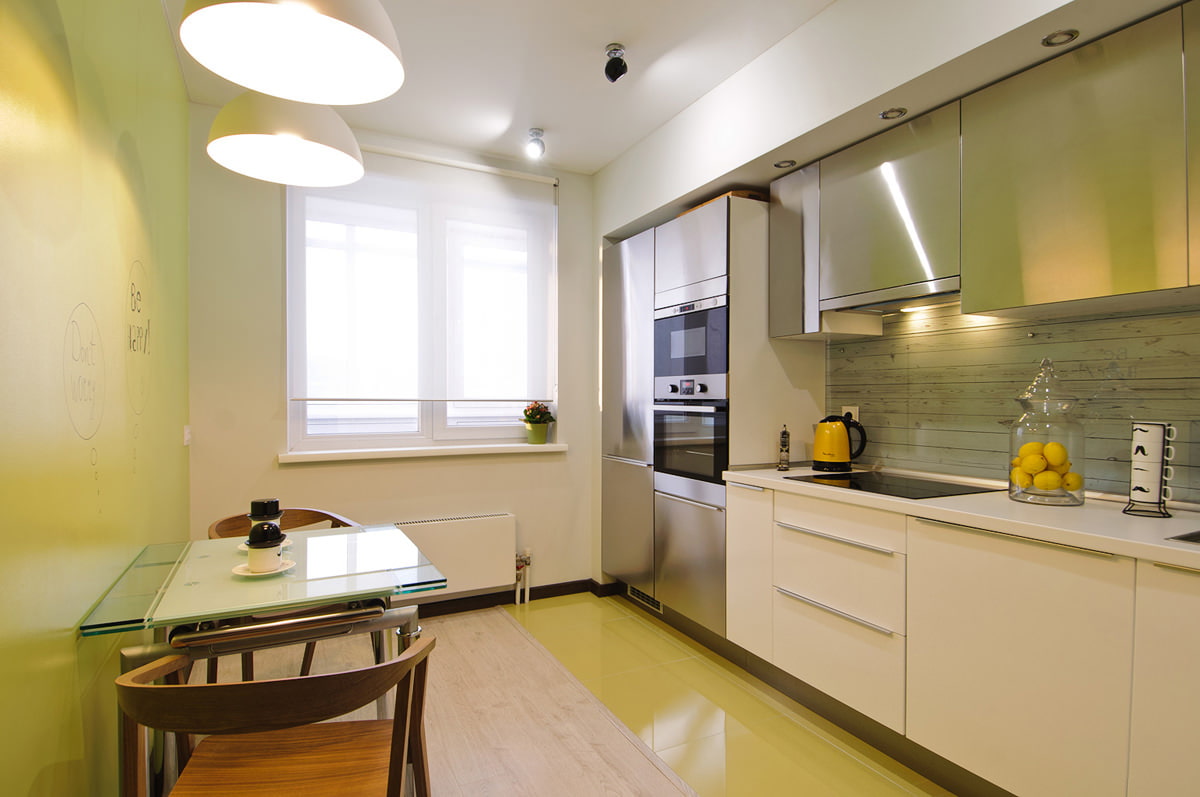 - Manier van bevestiging. Voor kleine keukens - bij de raamopening en voor grote keukens - aan de muur.