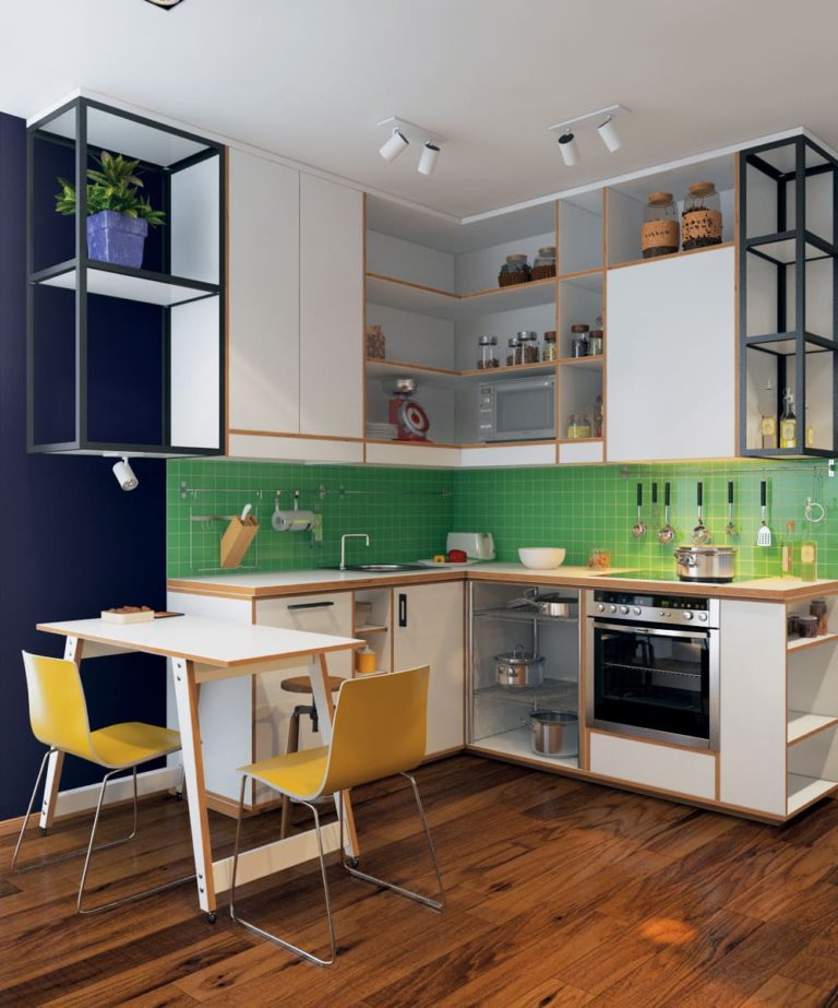 Voor een kleine keuken kunt u een opvouwbare handige tafel gebruiken in plaats van een omvangrijk stationair