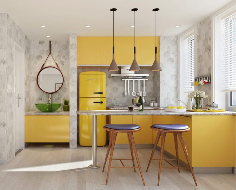 Functionaliteit is belangrijk, maar als u kleuren kiest die niet naar wens zijn, zal het onaangenaam zijn om in de keuken te zijn.