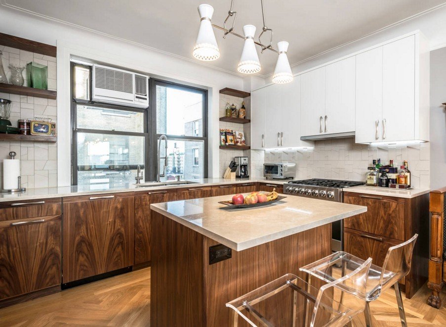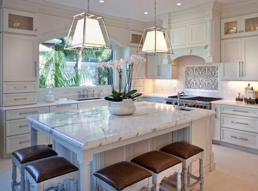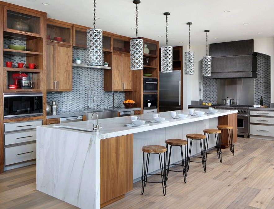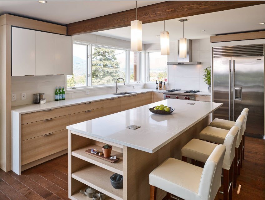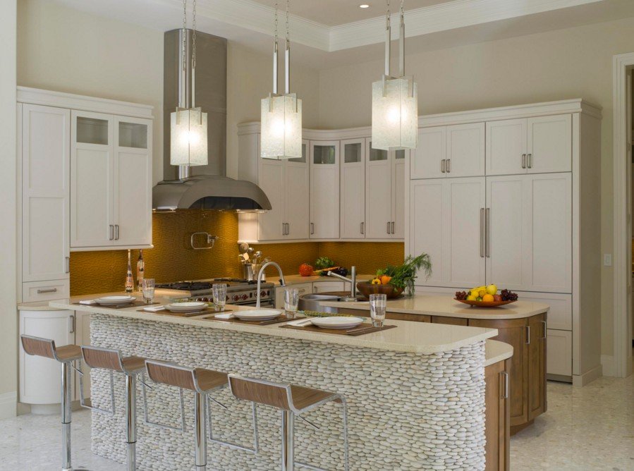 Met decoratieve decoraties van het eilandgedeelte van de keukenset kunt u het interieur perfect decoreren. U kunt oude boeken harmonieus op open planken rangschikken of zelfs een aquarium organiseren. De zaak is van jou. Bekijk de foto's die we hebben geselecteerd. Er zijn veel interessante dingen.
