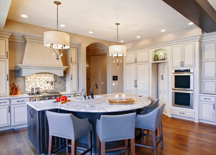 Een voorbeeld van stijlvolle markering met hanglampen van een kookeiland