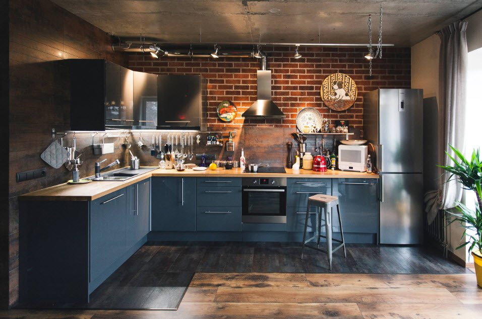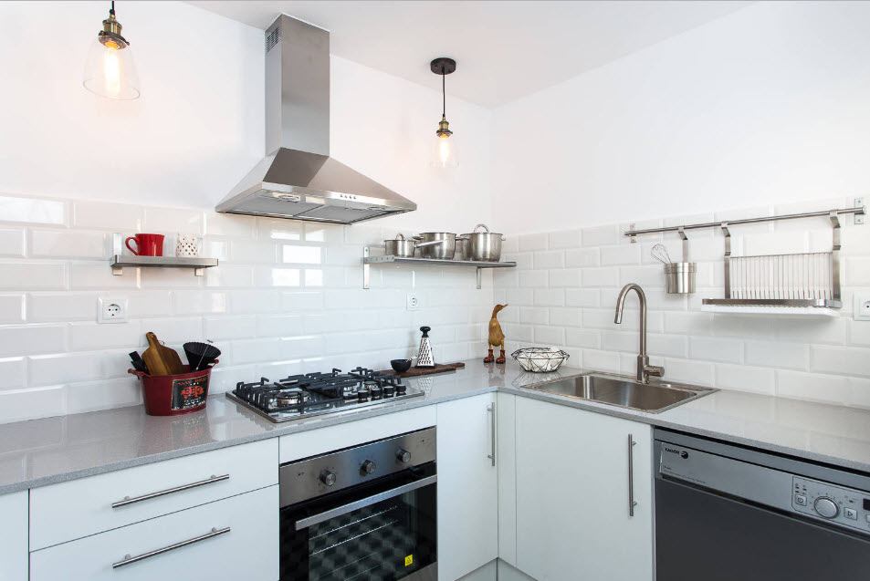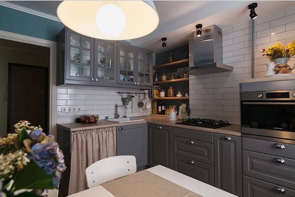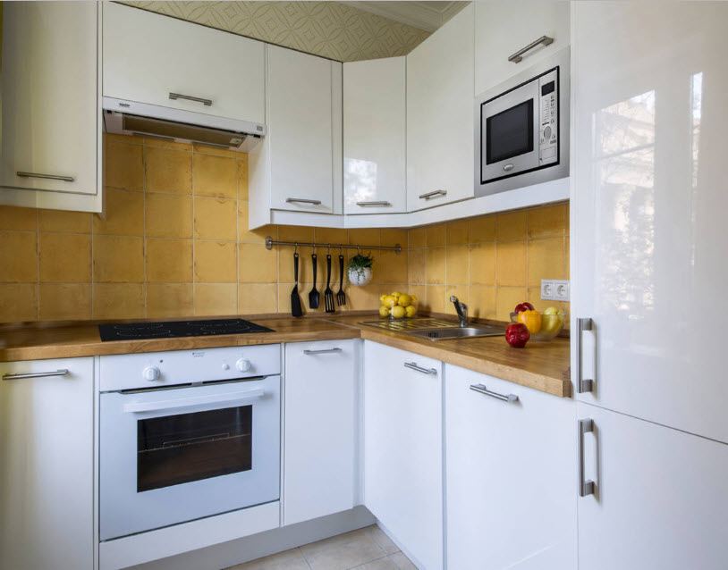 De hoekkeuken ziet er stijlvol en beknopt uit, zowel in kleine kamers als in ruime kamers