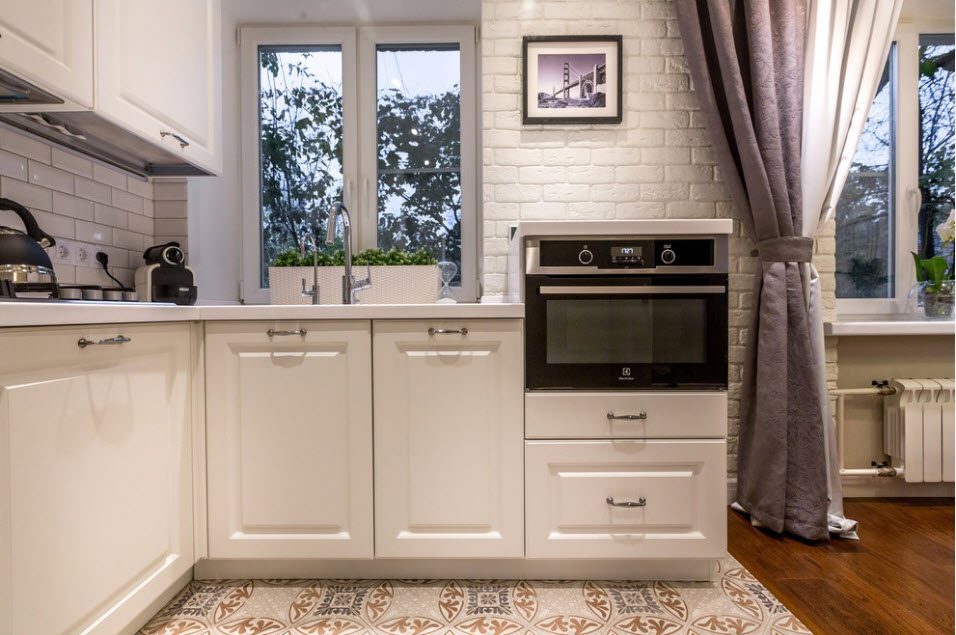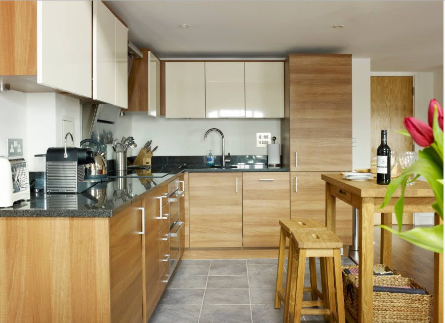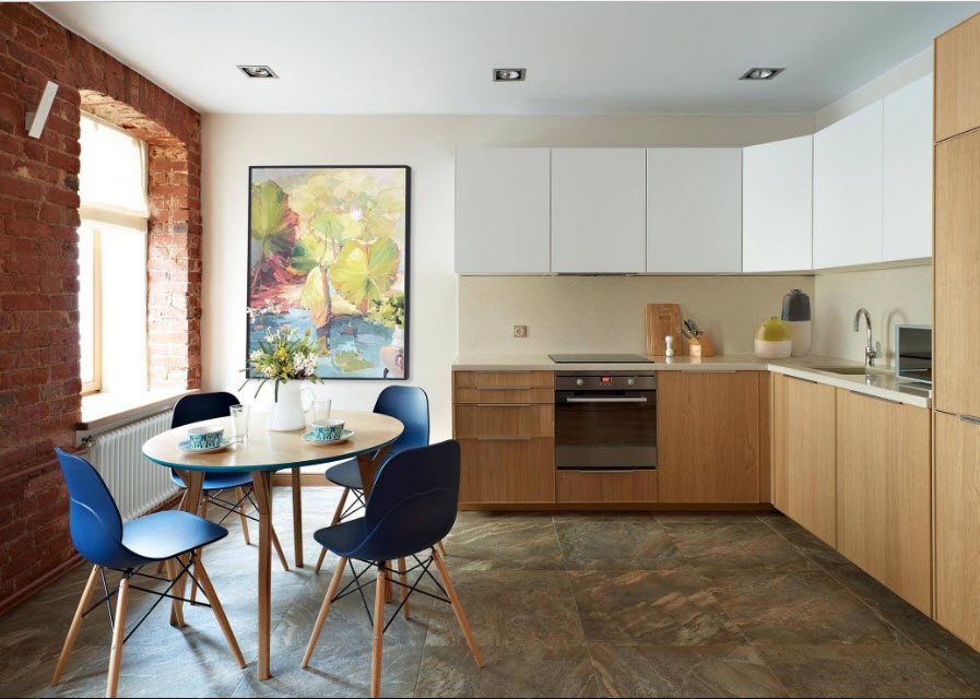 Belangrijke aspecten in het ontwerp zijn zonnestralen, kunstlicht en de selectie van kleuren. Alles moet hieraan bijdragen. De functionele plaatsing van gebruiksvoorwerpen, hoekkoppen en belangrijke gebieden heeft voorrang. Het moderne kookproces is vergelijkbaar met lichtheid, gemak, natuurlijkheid. Hier zou de hand van de natuur zelf moeten worden gevoeld. Zeg nee tegen de hoop.