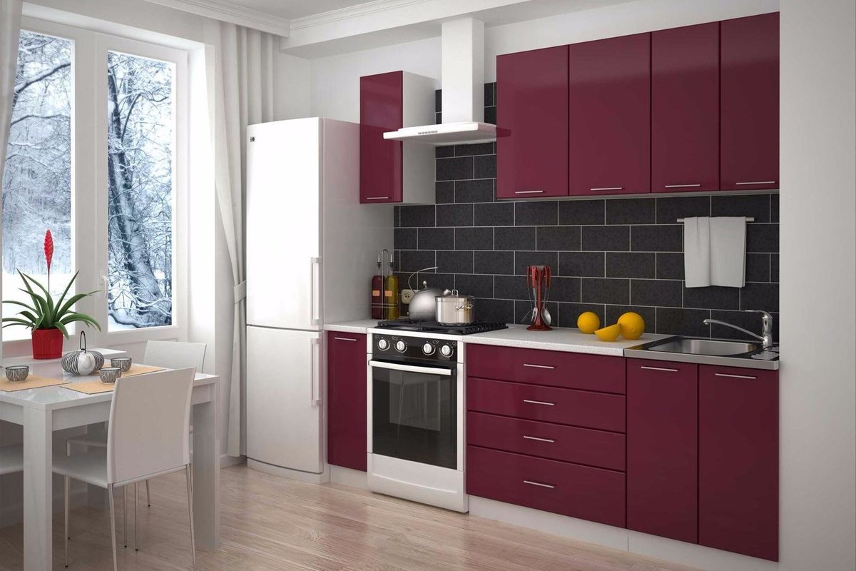 Als je felle kleuren aan je leven wilt toevoegen, raden we je aan het interieur van de keuken in roze kleuren te ontwerpen zoals op de foto. Om de keuken er stijlvol uit te laten zien, raden we u aan om de voorkeur te geven aan matte oppervlakken.
