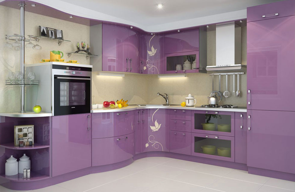 Als u niet kunt beslissen over het ontwerp van designkeukens in heldere kleuren, stellen we voor om u te concentreren op heldere details. Bijvoorbeeld: heldere gordijnen, schalen, stoelen, vloerkleed.