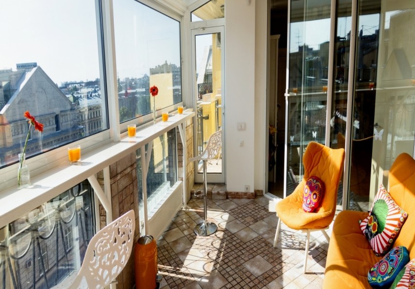 - de geglazuurde loggia is aan alle kanten gesloten door muren, slechts één heeft een groot raam (behalve hoekopties, waar er twee ramen zijn);