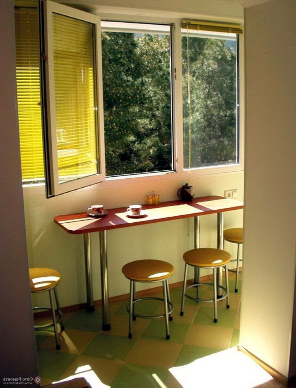 In plaats van de vensterbank kunt u een balk installeren, hiervoor is het niet eens nodig om een deel van de muur onder het raam te slopen