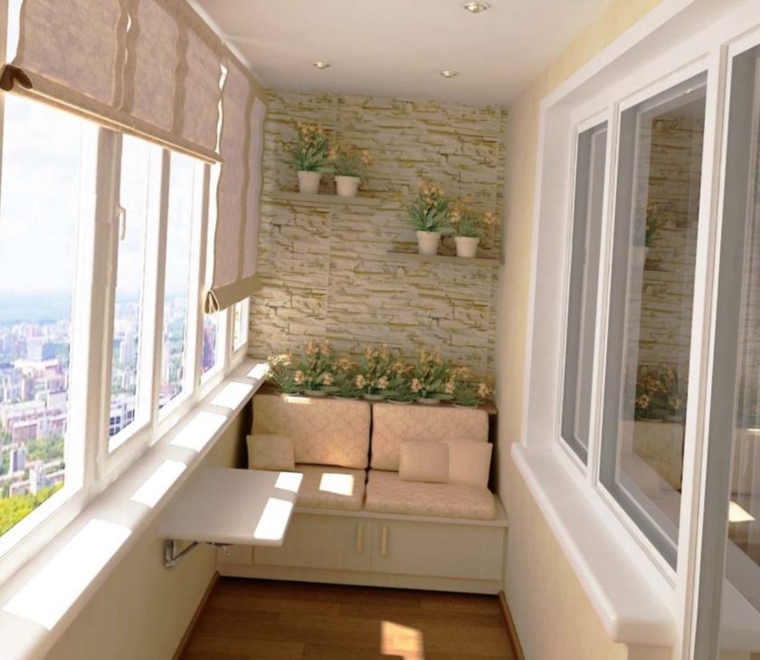 Het afwerken van een balkon vereist een competente aanpak: de ruimte moet tegelijkertijd warm zijn, maar niet te druk. Zware afwerkingsmaterialen zoals natuursteen, baksteen, porselein, massief hout zijn hier van weinig nut, omdat "overbelasting" vroeg of laat zal leiden tot vervorming, instorting van de ondersteunende structuren.