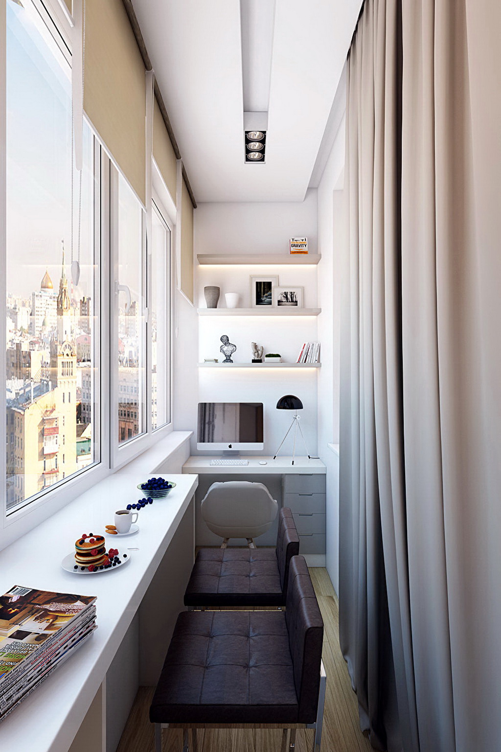 20 ontwerpideeën voor het verbouwen van een studio-appartement met een balkon of een loggia