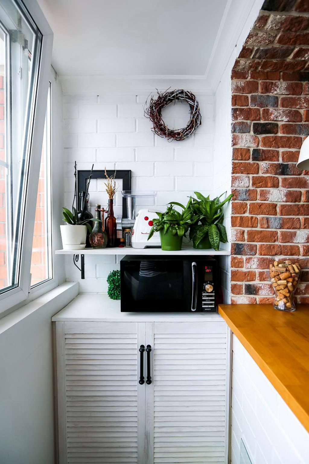 - Interessante ontwerpoplossingen voor een keuken gecombineerd met een balkon