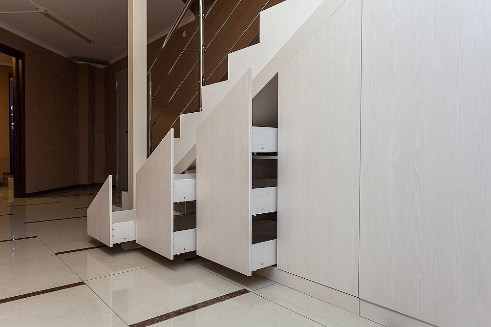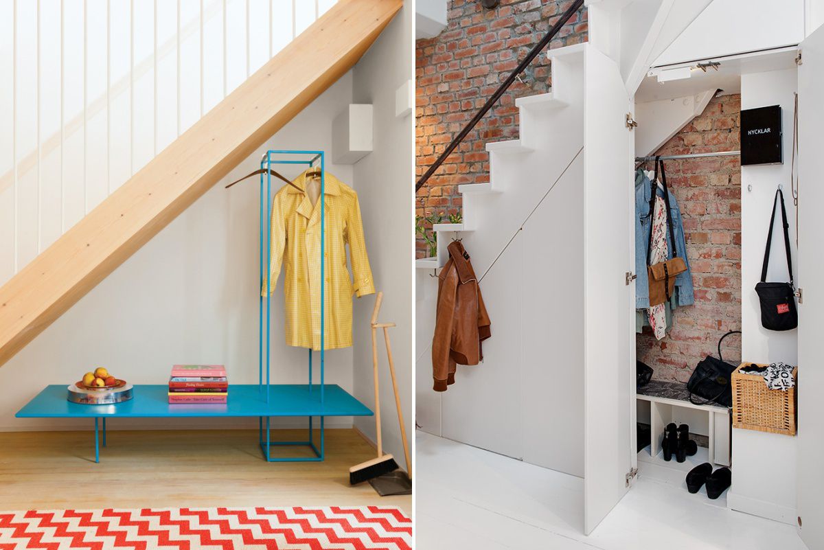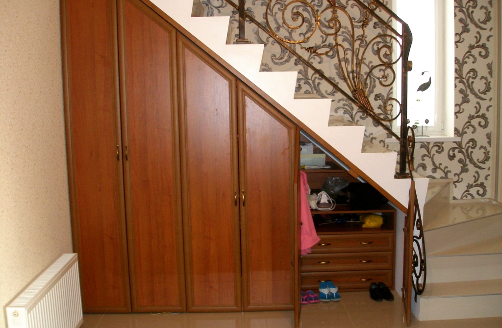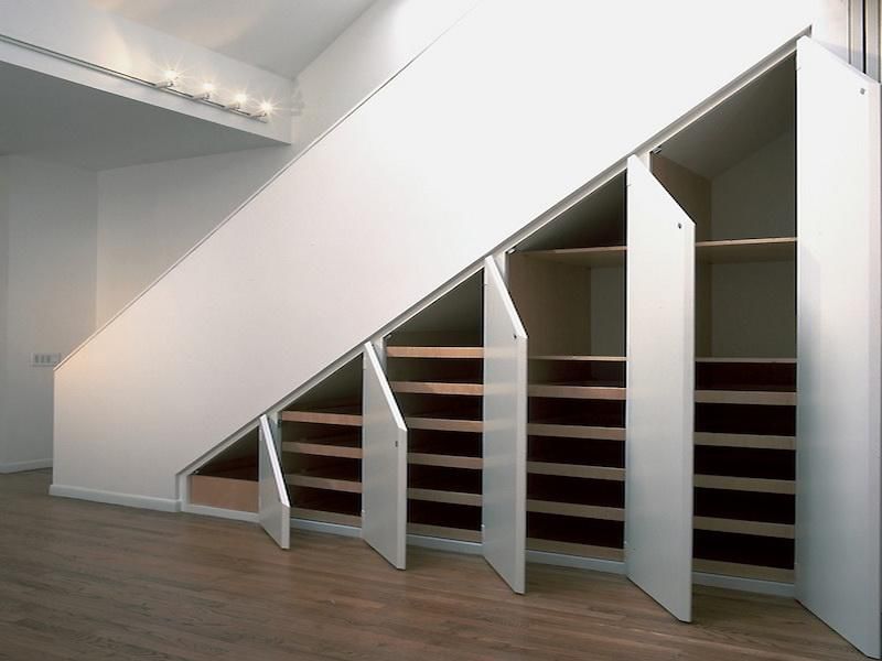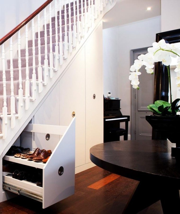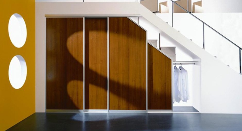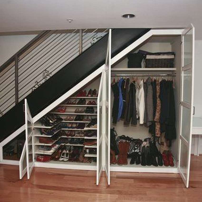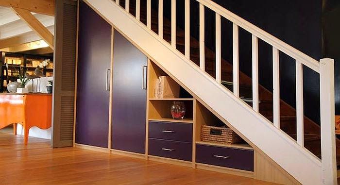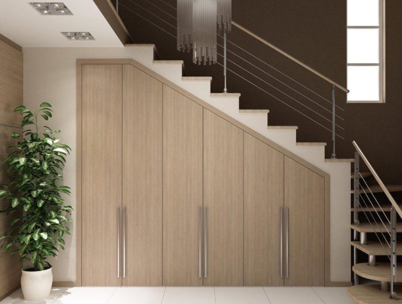 L'une des utilisations les plus courantes de la cage d'escalier est l'emplacement de la garde-robe intégrée.