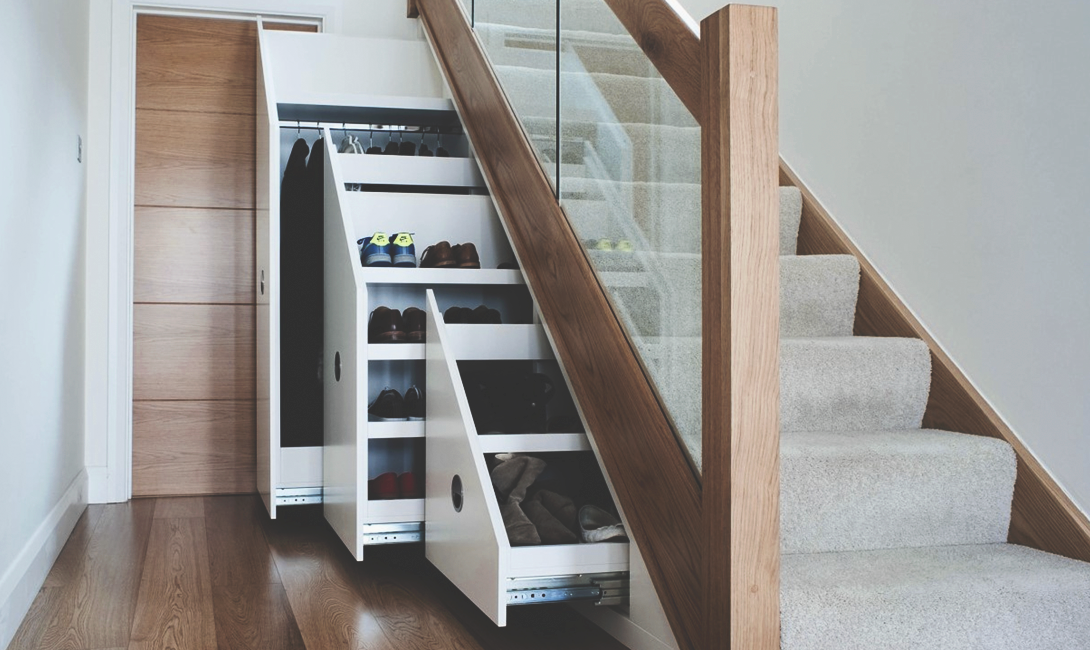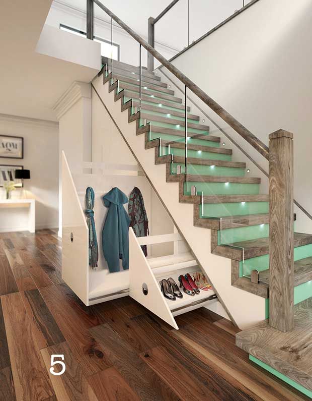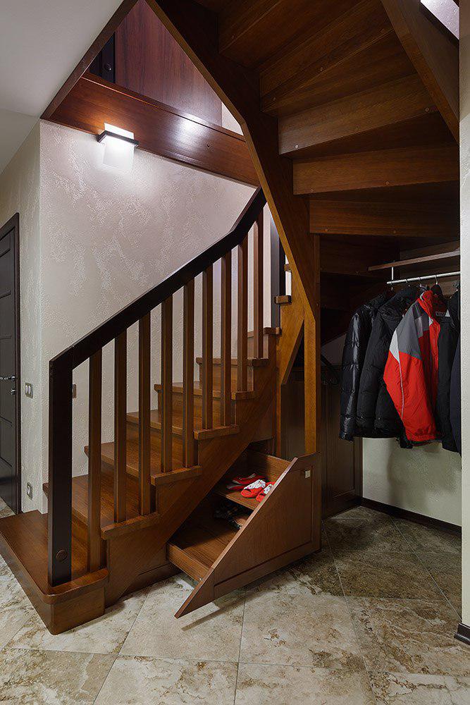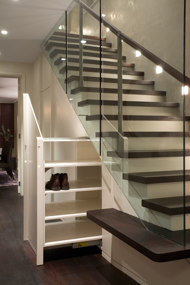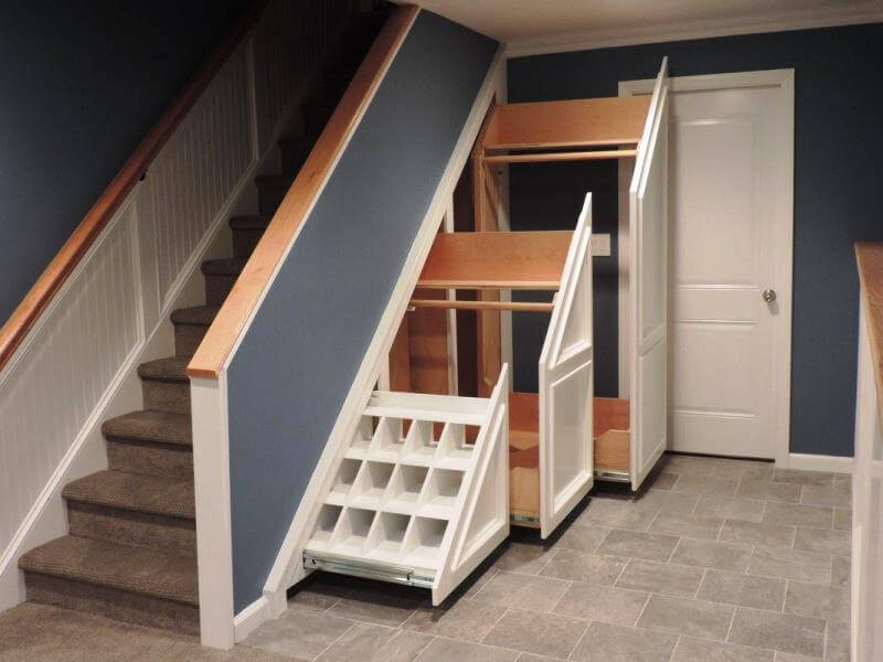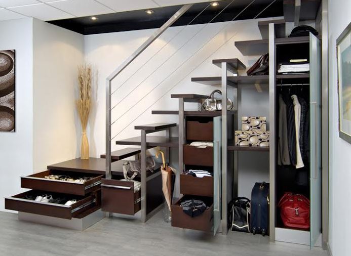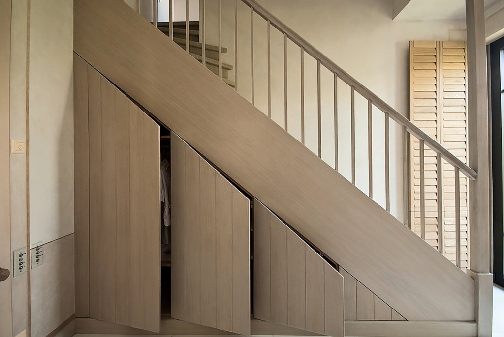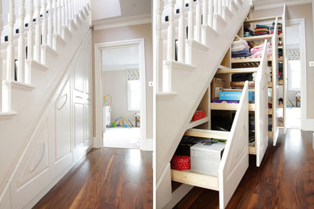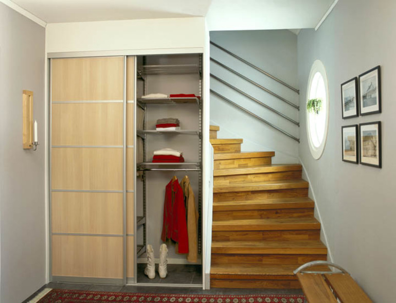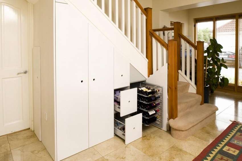 L'une des utilisations les plus courantes de la cage d'escalier est l'emplacement de la garde-robe intégrée.