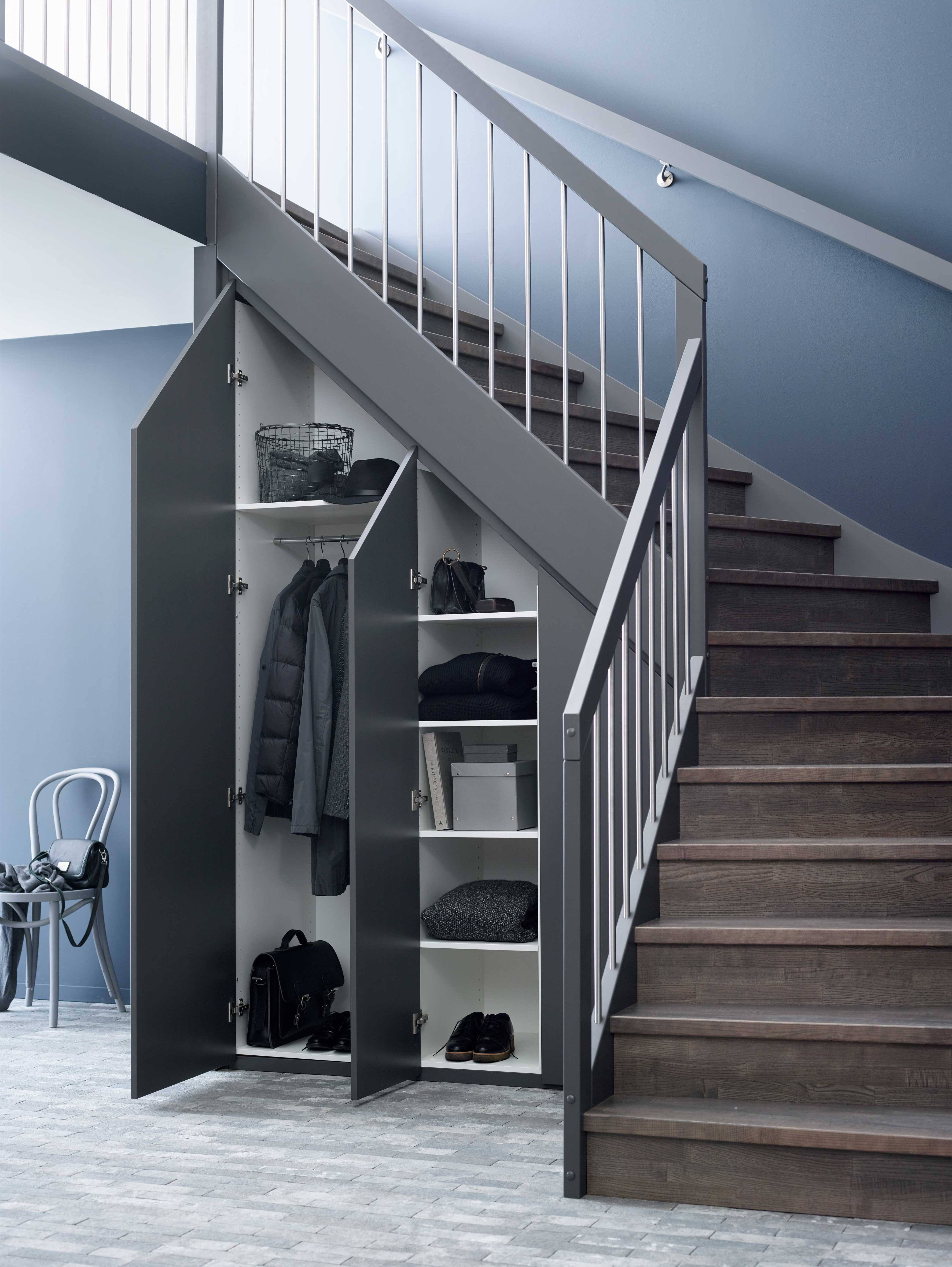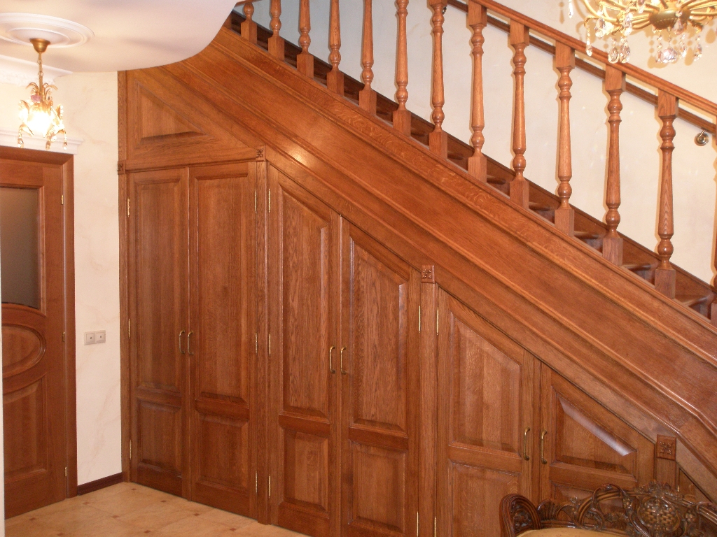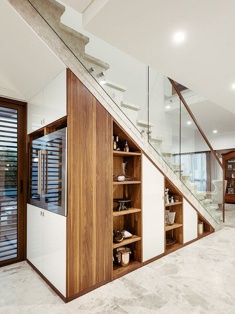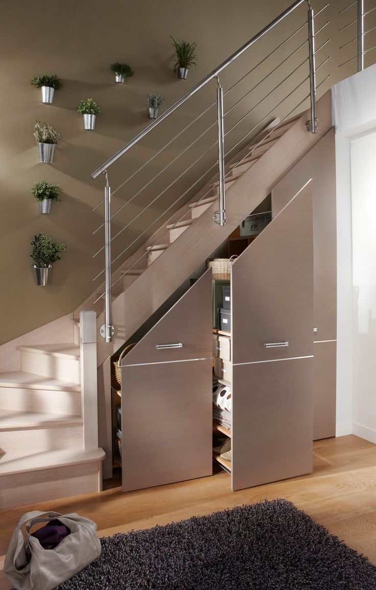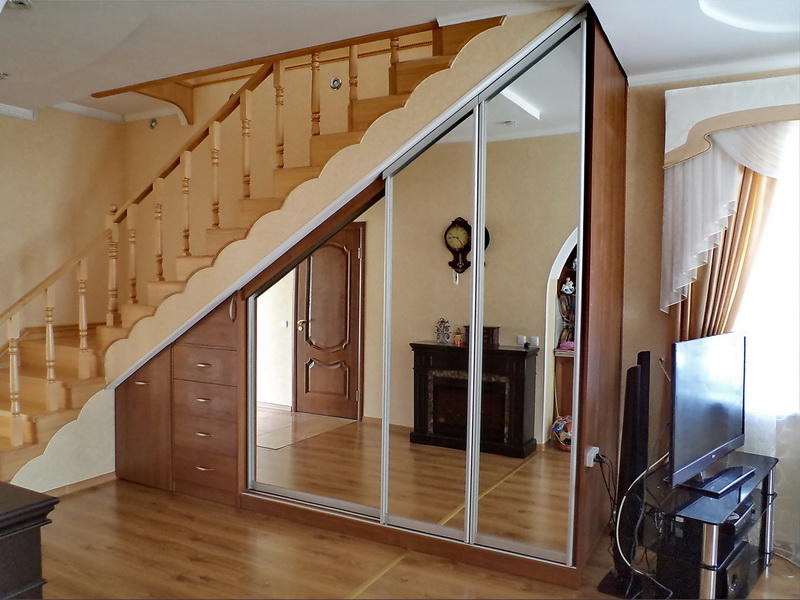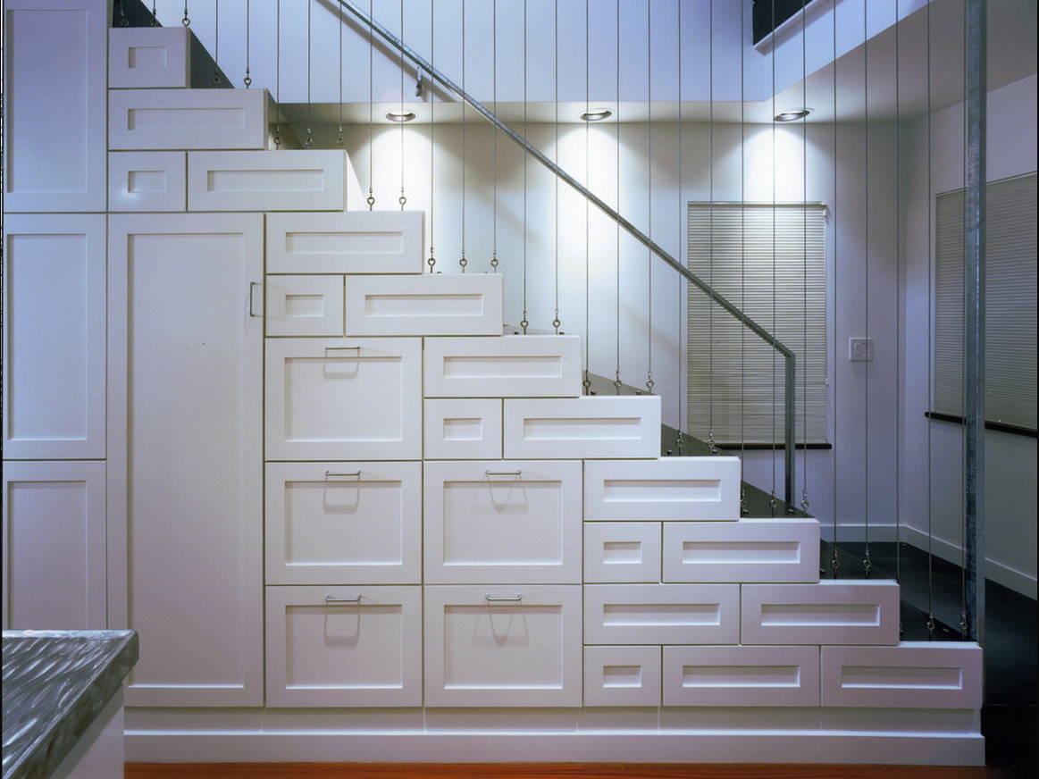 L'une des utilisations les plus courantes de la cage d'escalier est l'emplacement de la garde-robe intégrée.