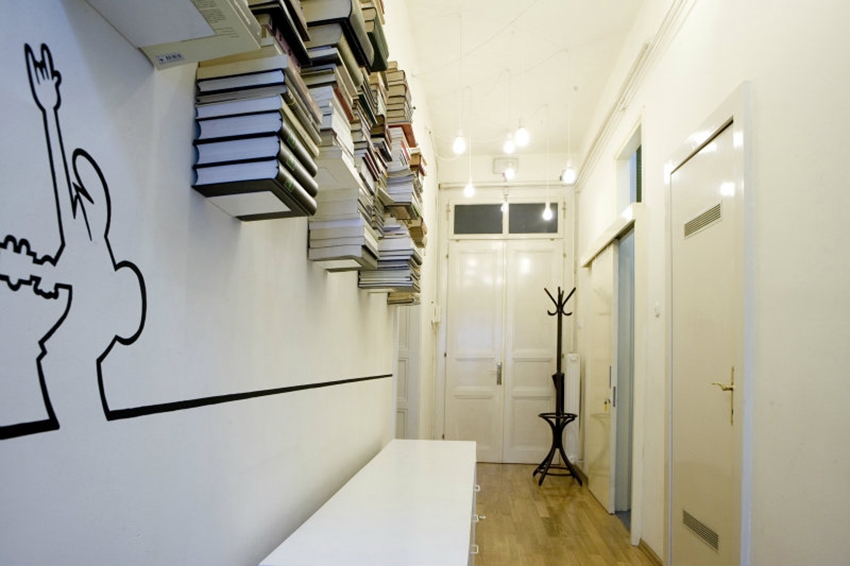 Le quart inférieur et supérieur des murs dans les allées ne sont généralement pas impliqués. Il est proposé d'organiser des systèmes de stockage. Les étagères inférieures sont mieux faites peu profondes, laissant plus d'espace pour la libre circulation le long des couloirs. Ces avions peuvent être fermés (derrière des portes) ou ouverts. Ils peuvent être remplis de chaussures, de livres, d'outils de travail, de blancs, de toutes choses homogènes.