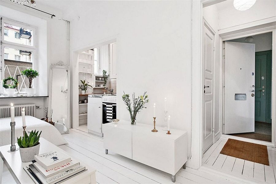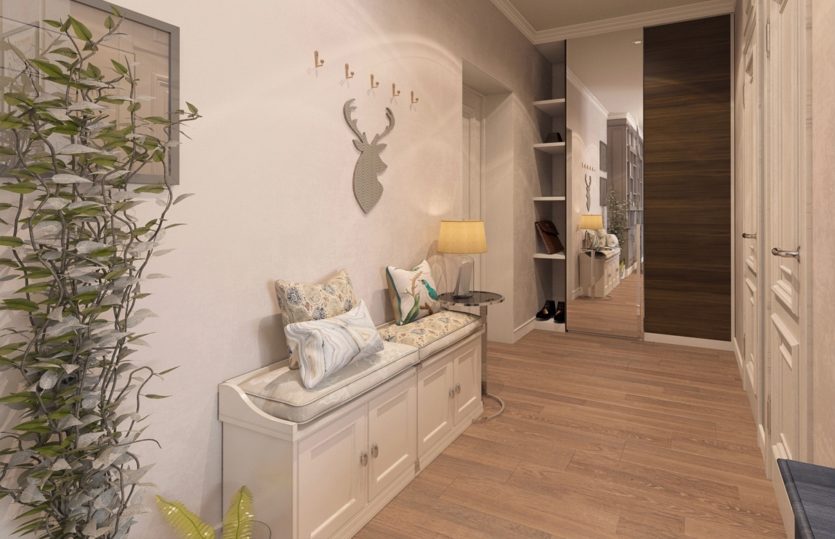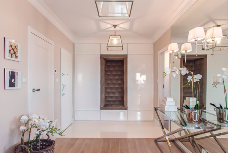 Le hall d'entrée est l'endroit le plus «passage» de l'appartement, donc sa fonctionnalité doit être au plus haut niveau