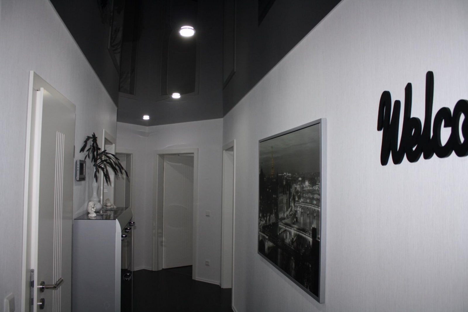 Le plafond tendu du couloir est très élégant et donne le ton à cette pièce.