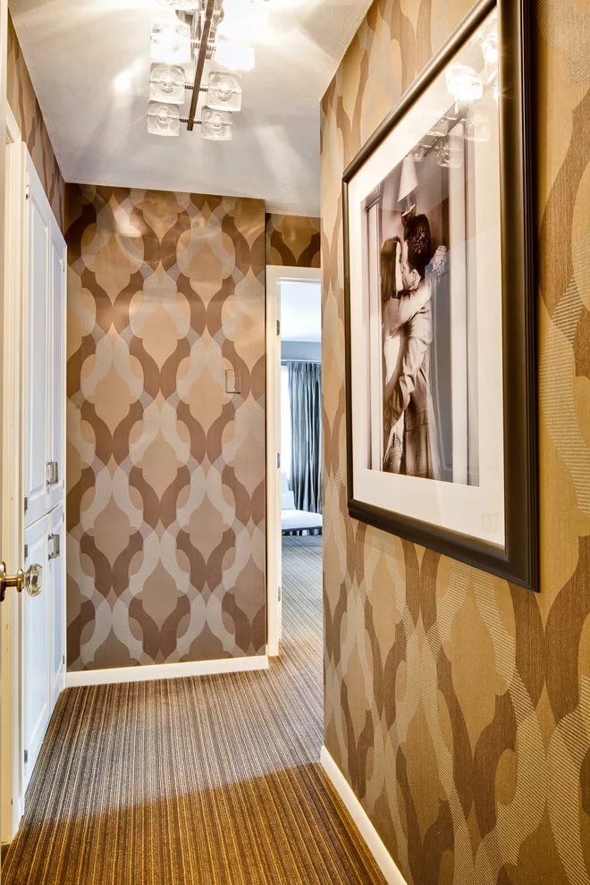Le papier peint pour un petit couloir est une excellente occasion pour des décisions de conception intéressantes, des jeux avec la lumière, la couleur et les formes.