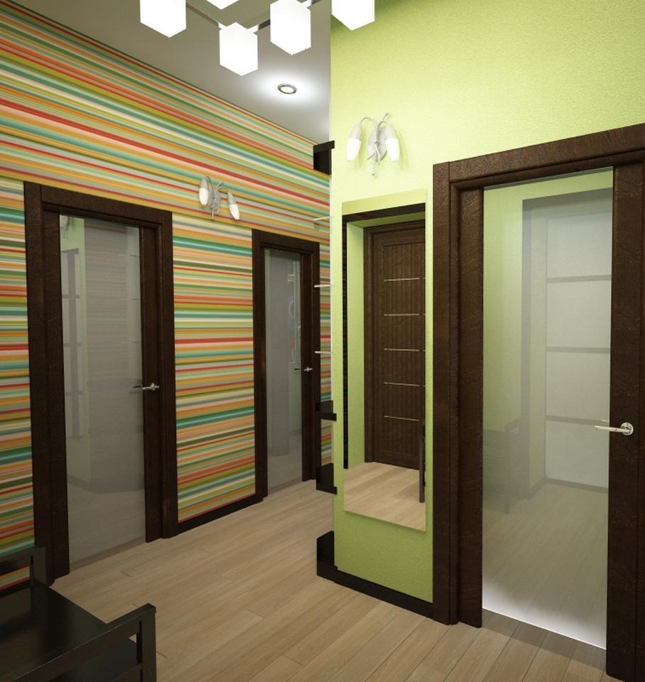 Troisièmement, le dessin est choisi avec une attention particulière. Par exemple, rappelez-vous que les rayures verticales rendront le couloir étroit encore plus étroit, tandis que les rayures horizontales créeront l'apparence d'un grand couloir.