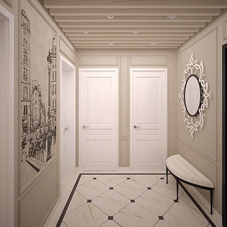 Faites attention! Lors de la décoration du couloir, adhérez à l'unité. Les options de couleurs les plus réussies sont le gris ou le beige.