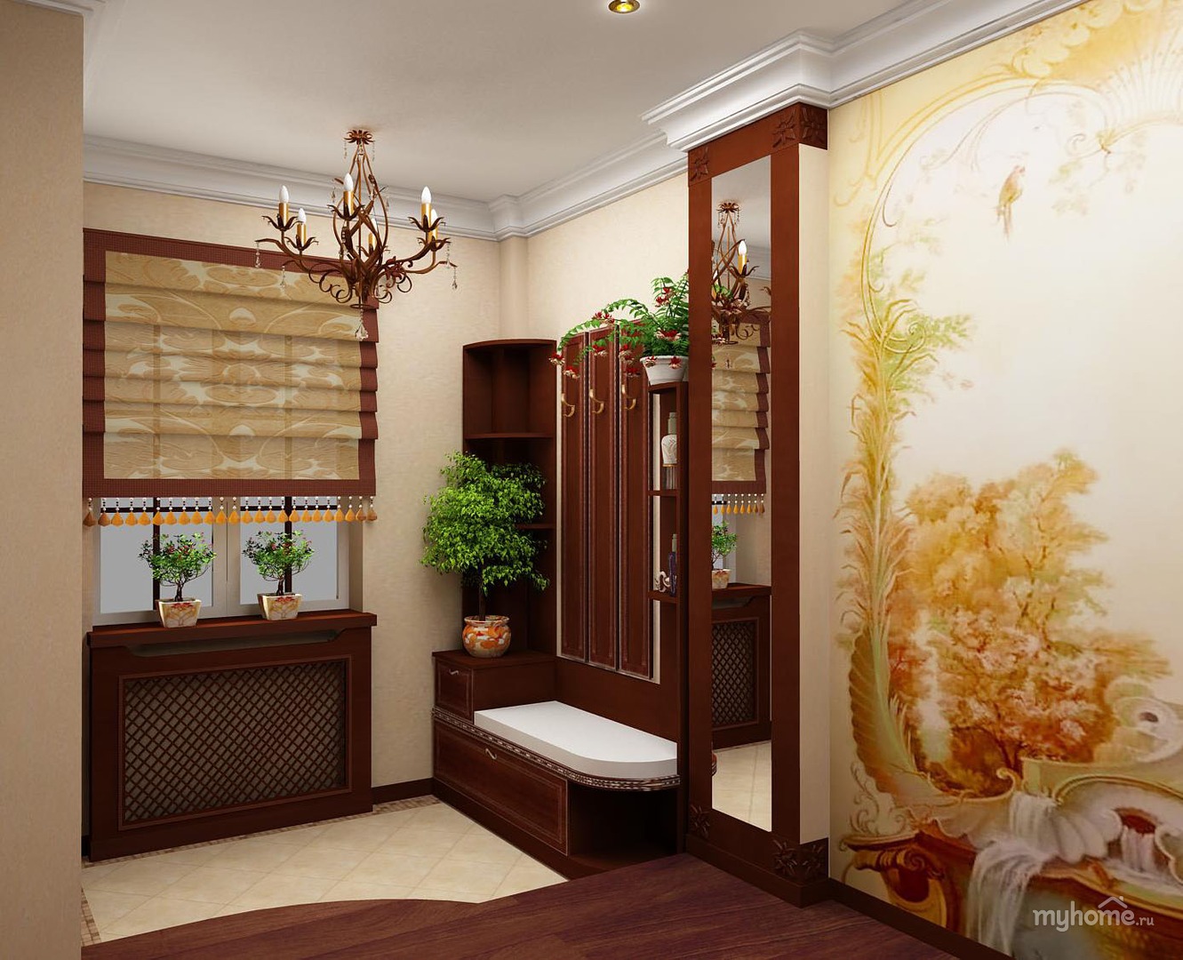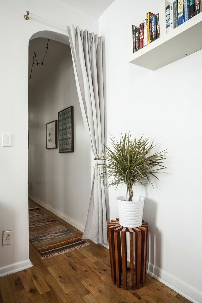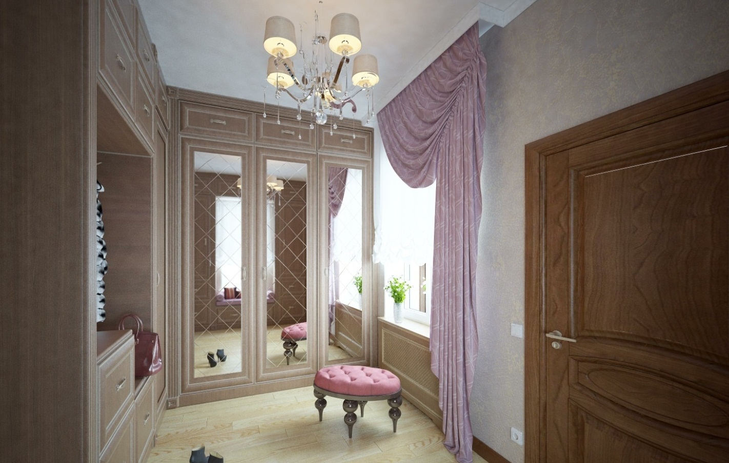 Un gros plus dans l'organisation de l'espace dans le couloir sont de beaux rideaux qui soulignent le goût de l'hôtesse.