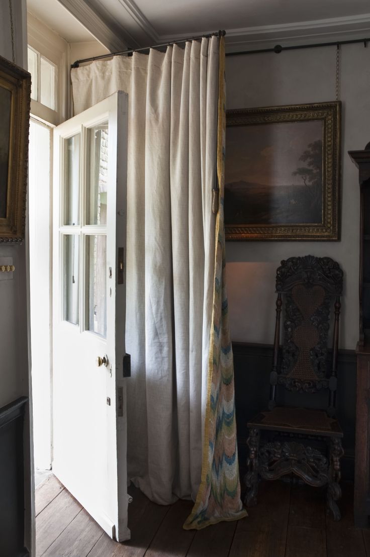 Les rideaux peuvent être placés non seulement sur la fenêtre, mais aussi sur les portes.