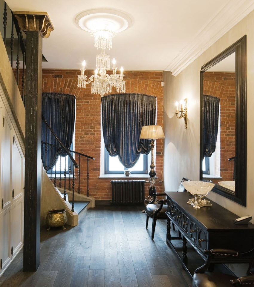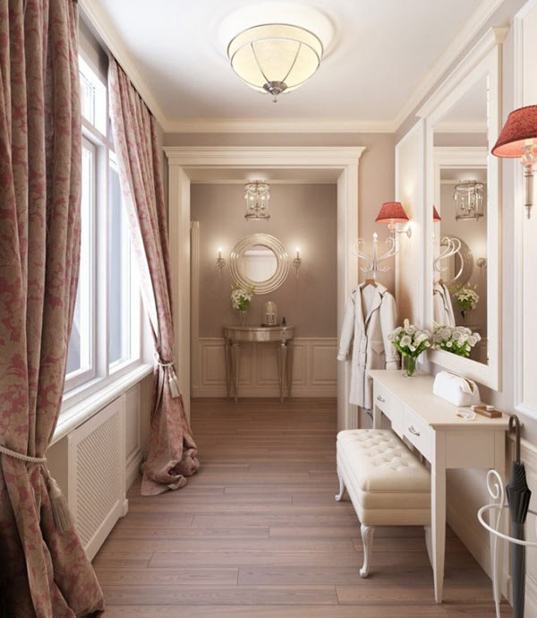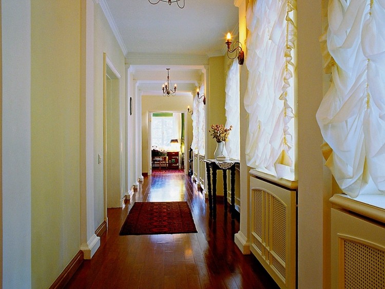 Si le couloir est petit, vous ne devriez pas acheter de rideaux pompeux.