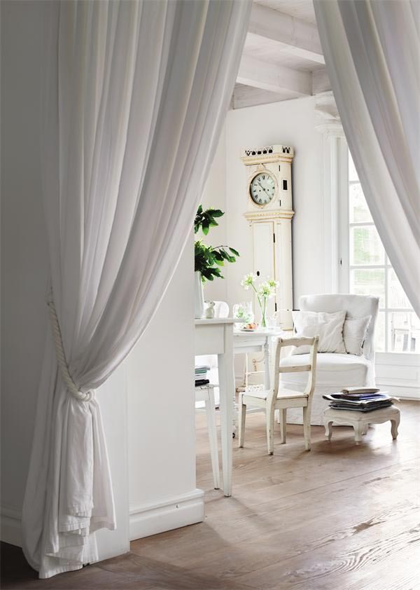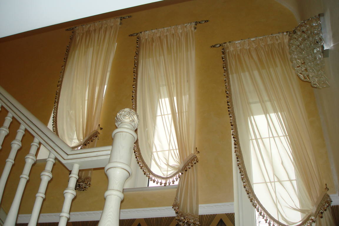 Pour les couloirs spacieux, vous pouvez combiner un tulle transparent et un beau rideau.
