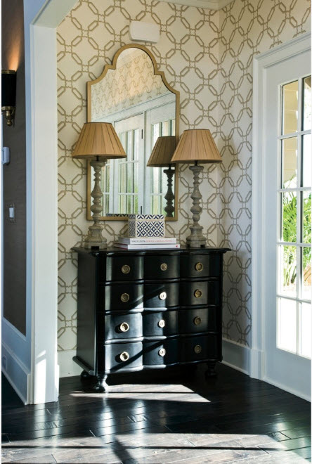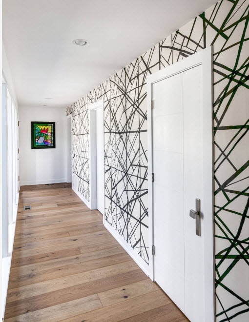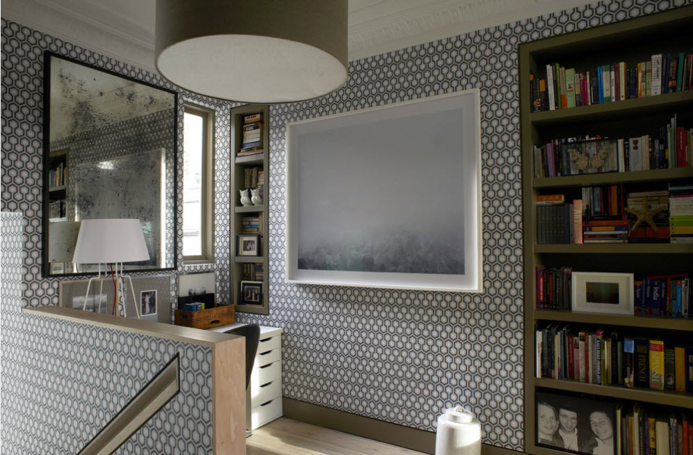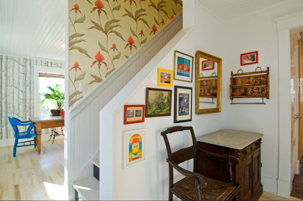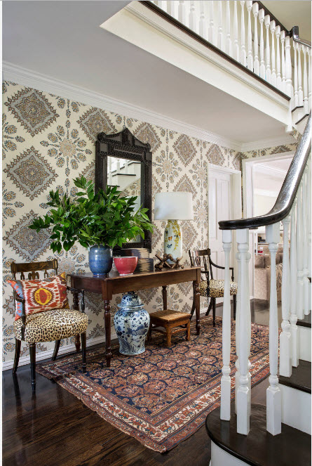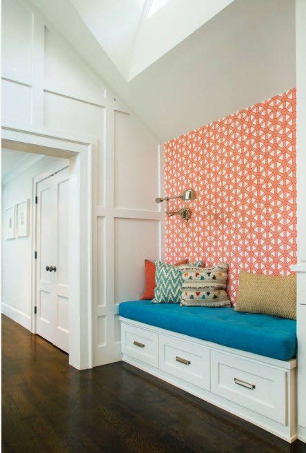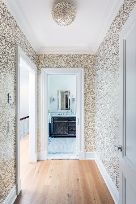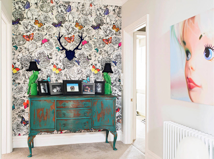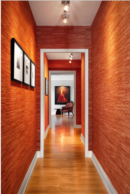 Même si un petit fragment du mur est décoré avec un tel papier peint, visuellement un petit couloir aura l'air plus.