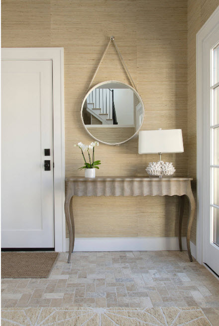 Miroir rond pour un hall d'entrée dans une maison privée.
