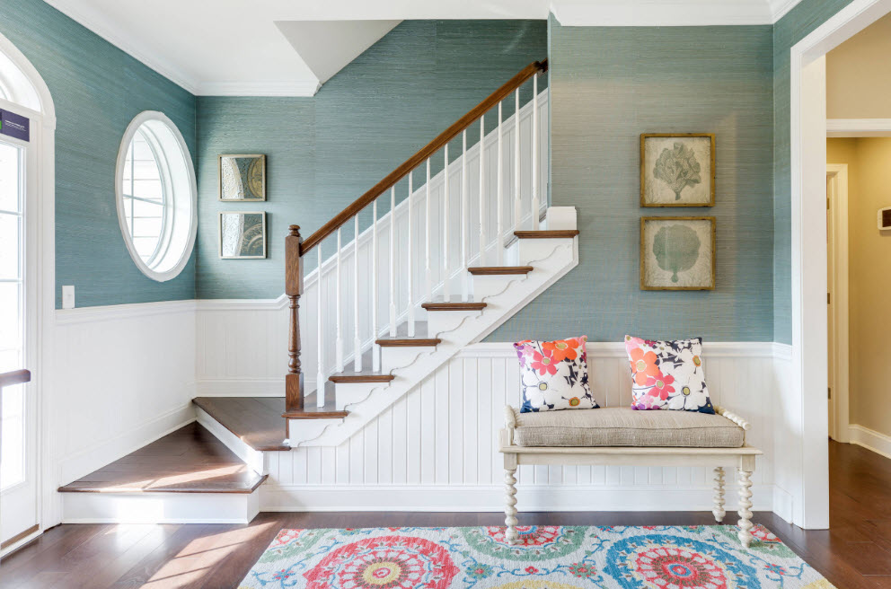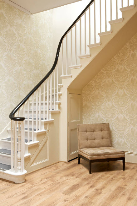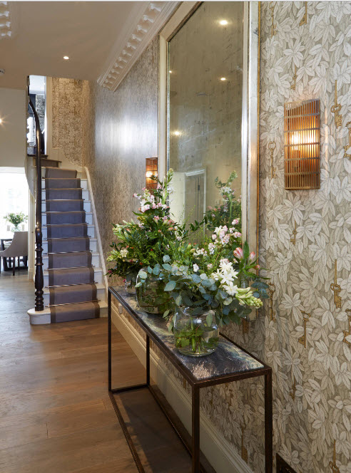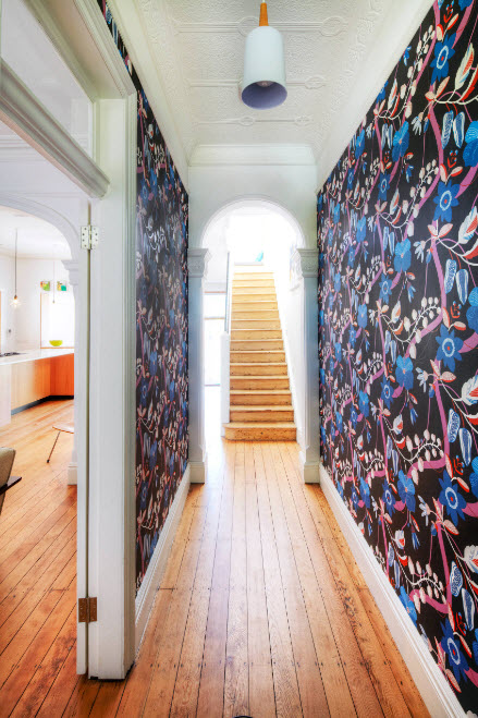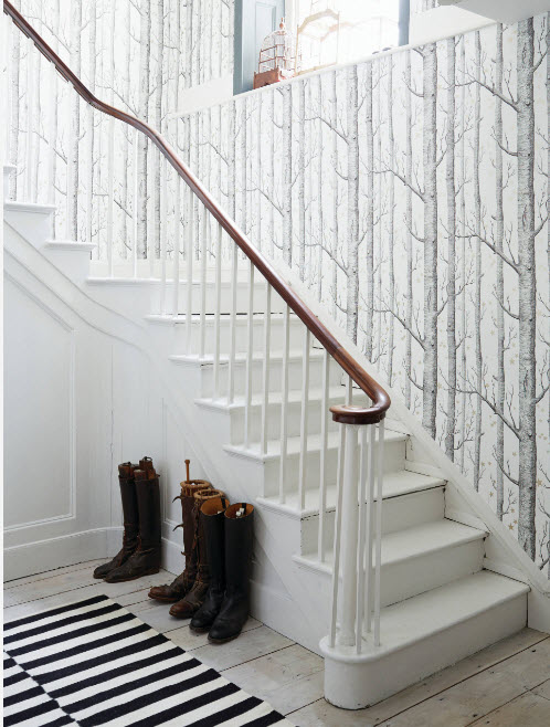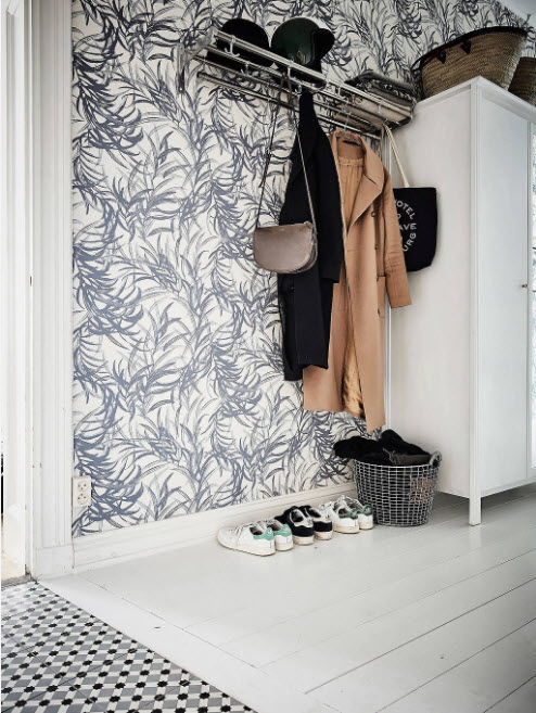L'utilisation de papiers peints de style scandinave permet d'attirer l'attention des clients dès la première étape au-delà du seuil.