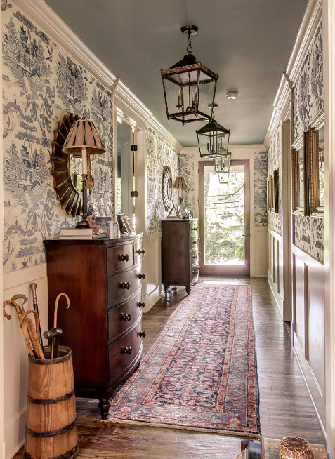 Les traditions locales, les caractéristiques territoriales influencent le choix de la décoration du couloir et des couloirs.
