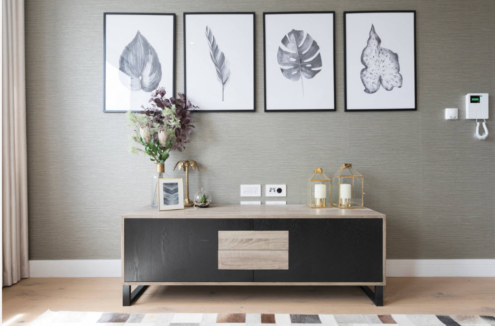 L'avantage des couleurs discrètes est aussi que sur leur fond les éléments de décor sont très impressionnants: appliques, petite photo ou bougeoir.