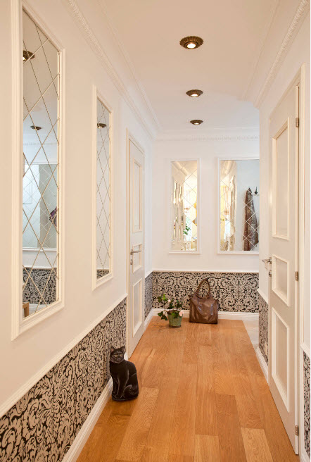Le couloir de style néoclassique est non seulement une option de conception réussie pour ce type de locaux, mais aussi une excellente démonstration de tous les avantages de ce style.