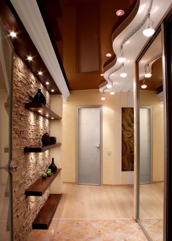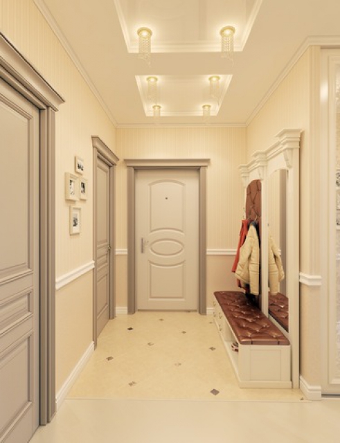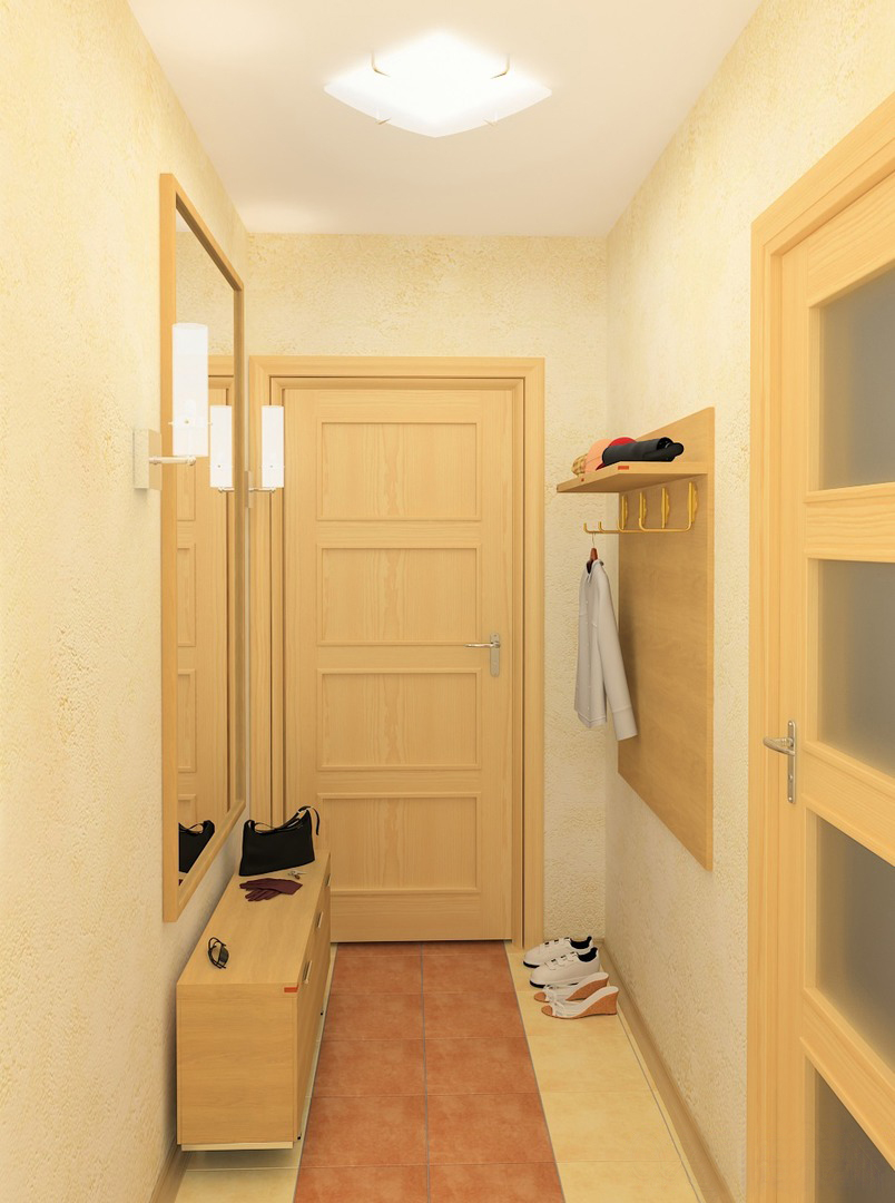 Chaque détail situé dans un couloir étroit devrait travailler sur son augmentation visuelle, ainsi que remplir une fonction spécifique.
