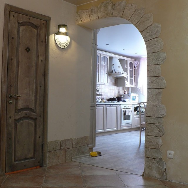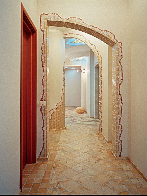 Des photos d'arches dans le couloir démontrent avec éloquence la portabilité de l'esthétique et de l'optimalité qu'elles apportent à n'importe quelle maison, la rendant encore plus confortable et intéressante.