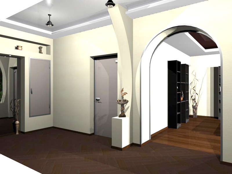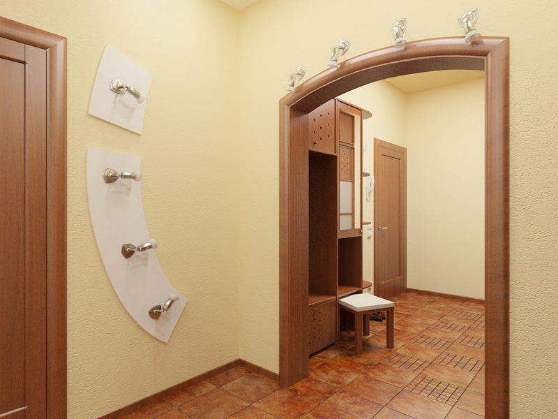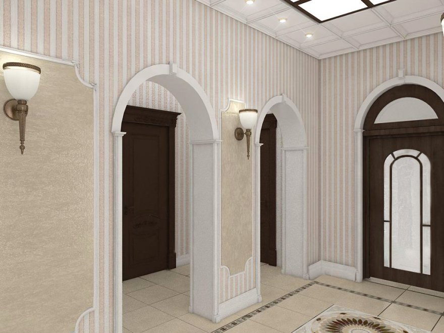 Une très belle solution de conception est l'introduction d'une entrée voûtée dans votre hall d'entrée, qui donne à la pièce une solennité et une sophistication, forme la première impression des propriétaires des appartements.