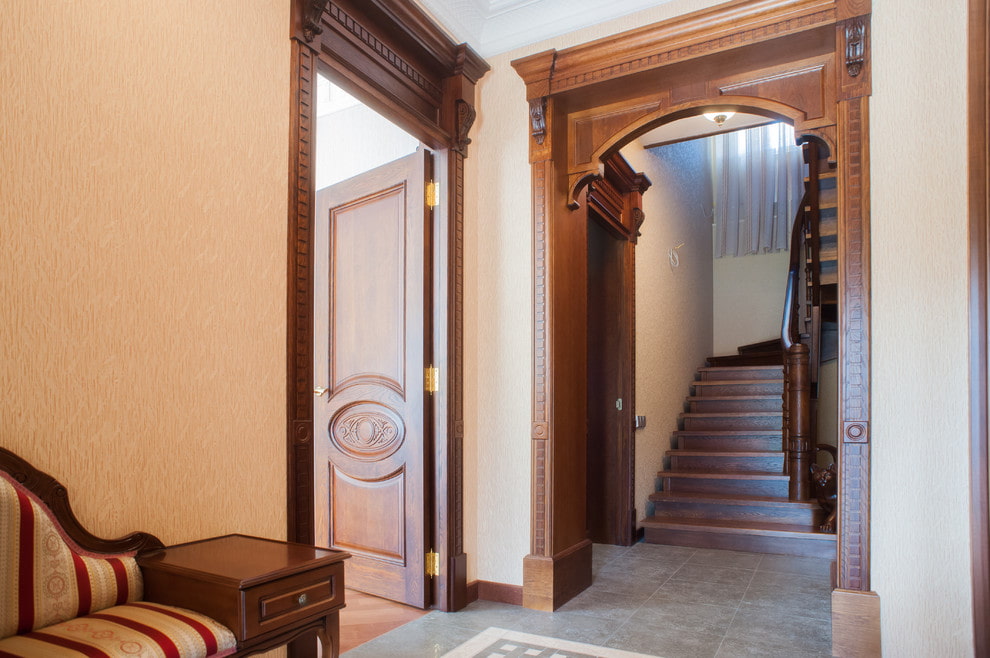 - Les boiseries sont peut-être la version la plus classique qui donne à l'arche l'apparence d'une porte familière à travers des chambranles, des panneaux de bois ou des éléments architecturaux en bois.