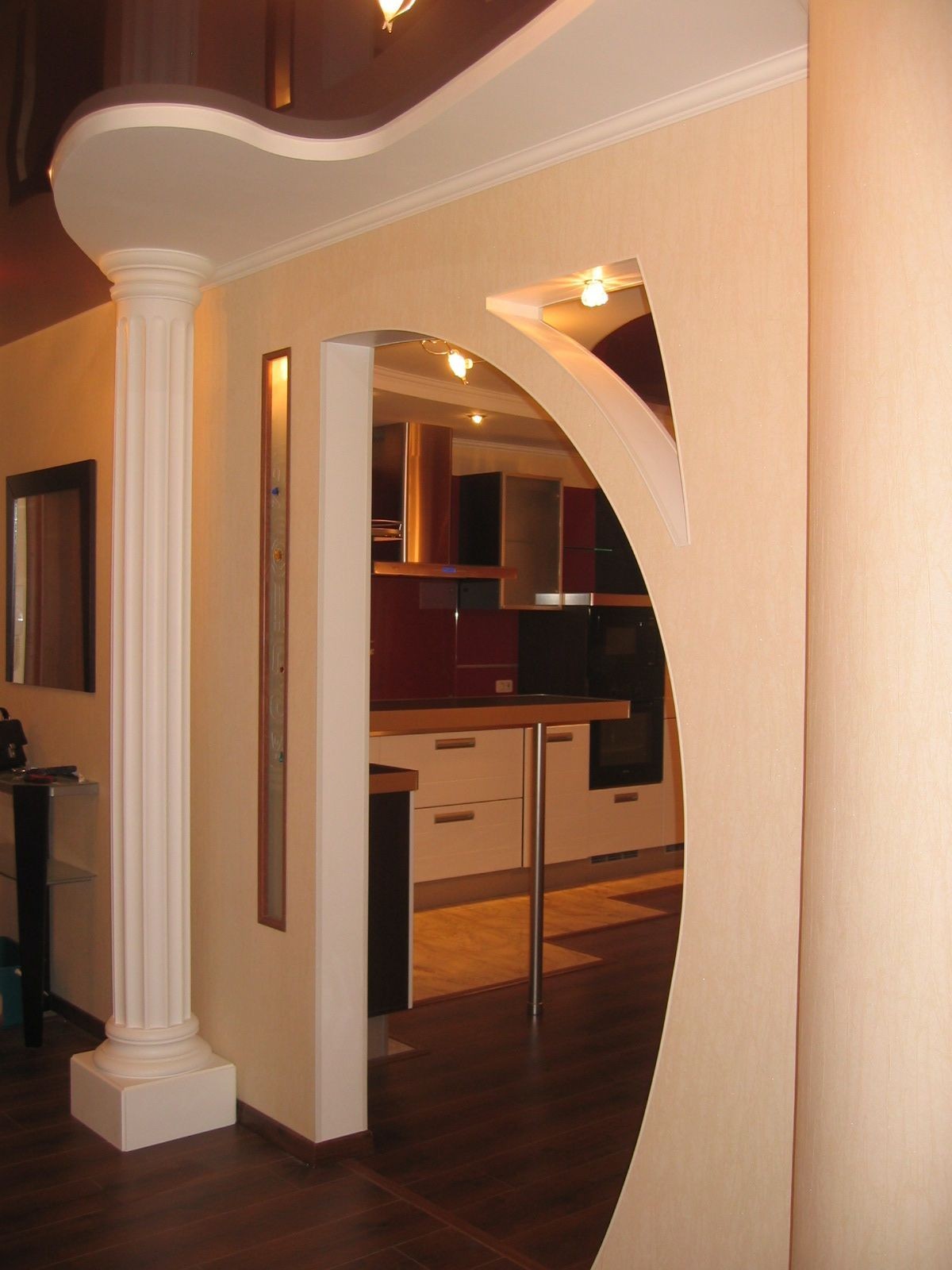 À l'aide de petites astuces (formes d'arc), vous pouvez réaliser un changement visuel dans la disposition de l'appartement.