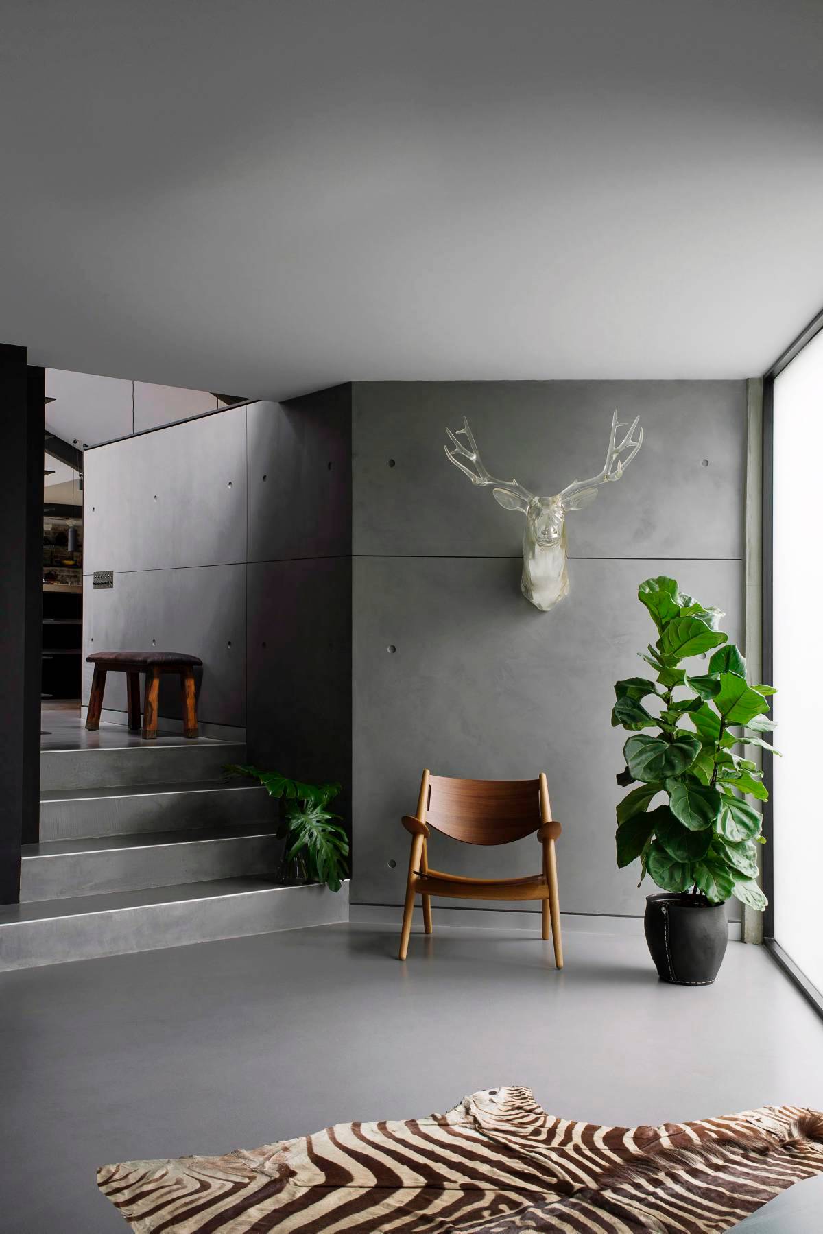 Revêtement de sol en céramique pratique dans le couloir, dont l'intérieur est conçu dans l'esprit du minimalisme japonais