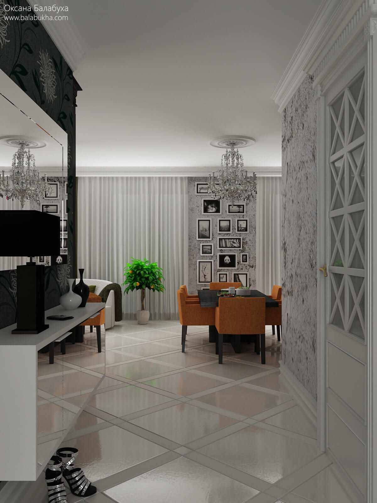 Vous pouvez diversifier la conception de la salle à l'aide de techniques architecturales inhabituelles. Les plus courantes sont des expériences avec des marches, différents niveaux d'étage. Dans le couloir, vous pouvez faire un petit podium, y placer un miroir, une commode, un pouf. À différents niveaux, l'utilisation de différents types de sols est autorisée.