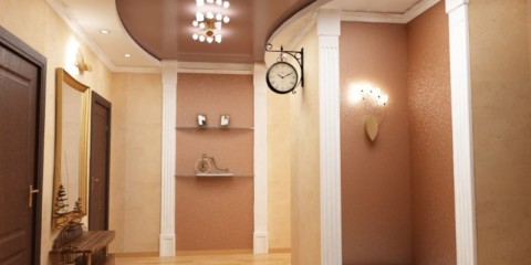 Le plafond joue un rôle important dans l'ensemble de l'intérieur. Dans le couloir, vous pouvez choisir les options de couverture du plafond, identiques aux options des salons. Ces types de plafonds sont généralement utilisés.