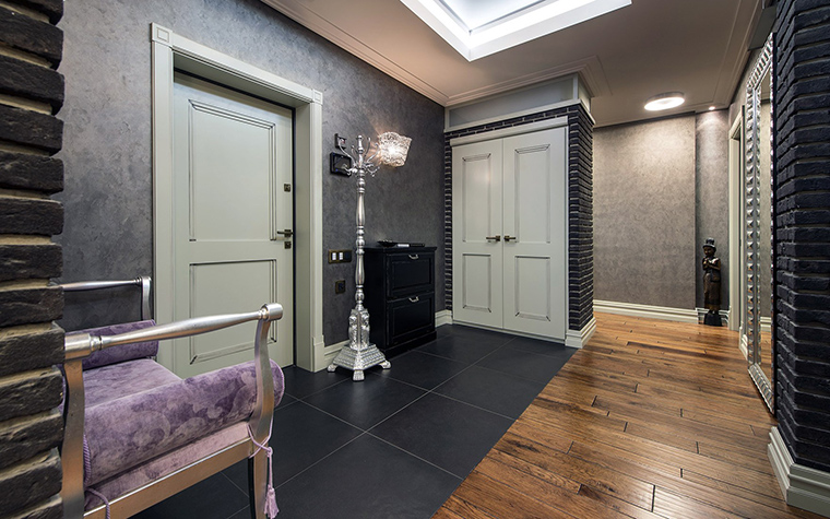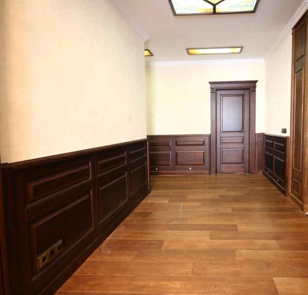 Le parquet est souvent choisi pour le plancher du couloir dans un style classique.