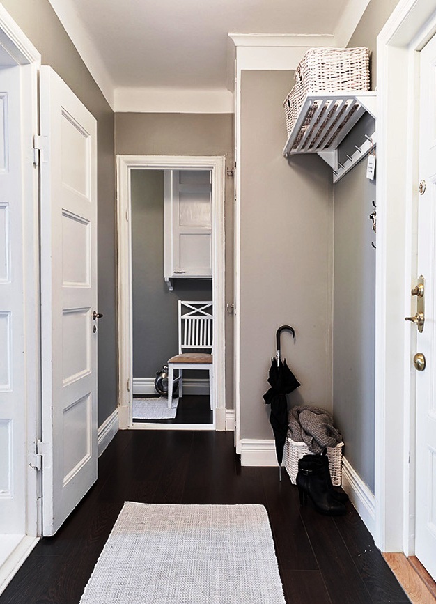 - Dans un couloir étroit, vous ne pouvez pas placer de meubles sur tout le mur et les armoires doivent être remplacées par des crochets.