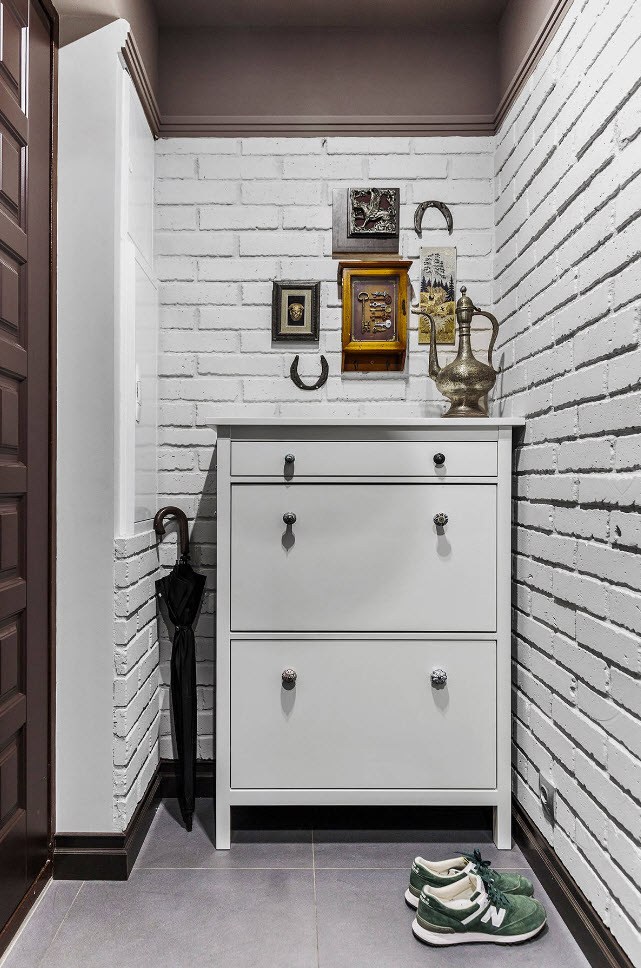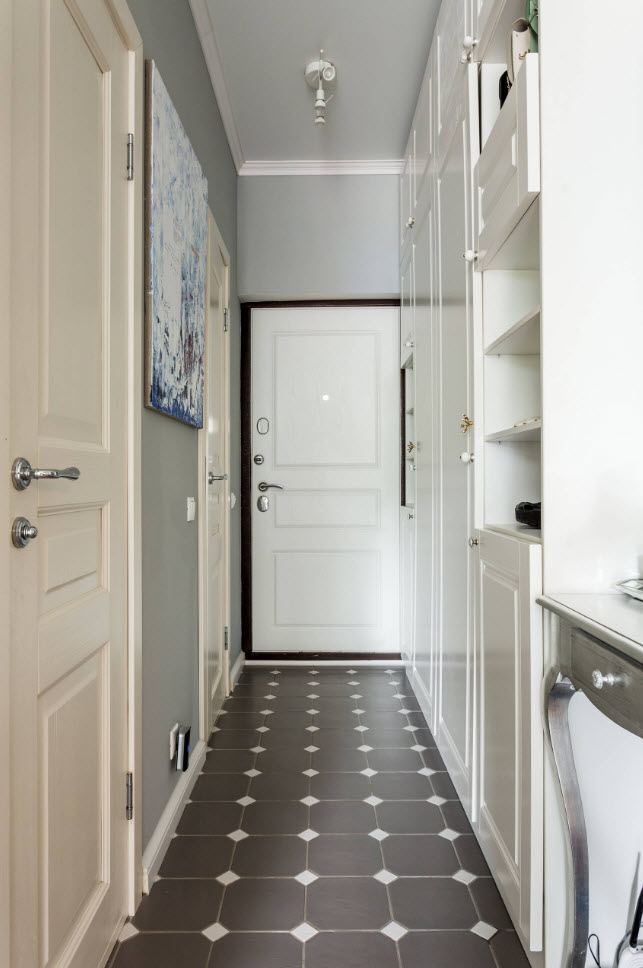 Les nuances claires sont considérées comme une option peu pratique pour un couloir, dans lequel la saleté et la poussière de la rue s'accumulent généralement.