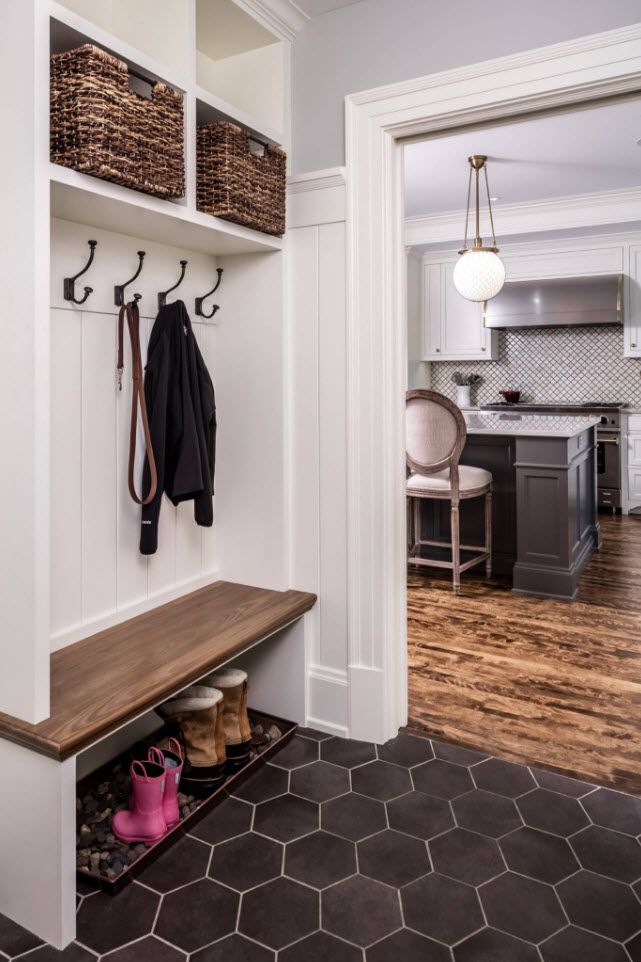 La salle n'est pas seulement le premier lieu de rencontre des visiteurs à domicile, mais aussi l'espace fonctionnel où ils rangent, s'habillent et se mettent en ordre avant de sortir.