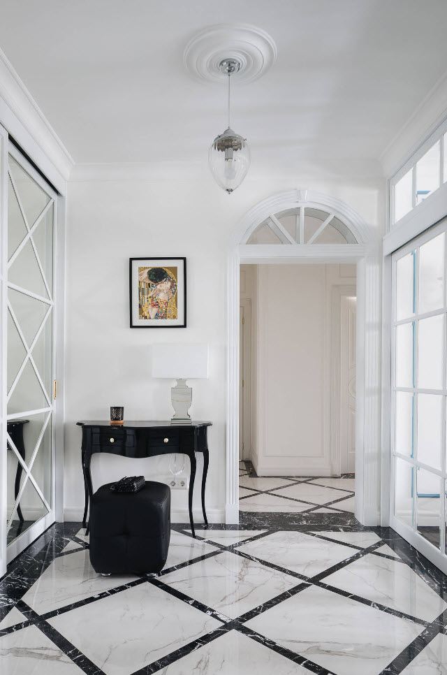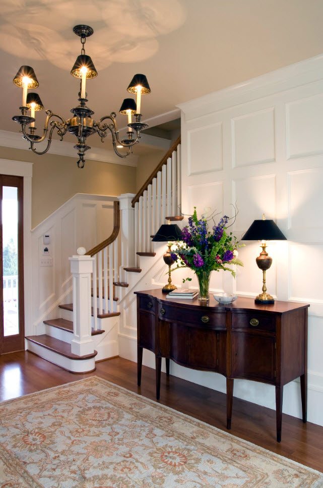 Le classique est un style de luxe et de richesse. Après avoir décoré le hall d'entrée dans ce sens, vous mettrez en valeur votre statut et créerez un intérieur cosy où il fait bon revenir.