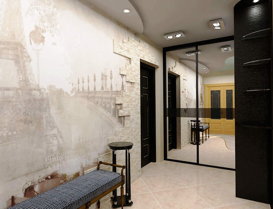 Cette méthode de décoration peut être appliquée non seulement dans le couloir, mais aussi dans le couloir du couloir, car elle est belle et s'adapte à tous les styles.