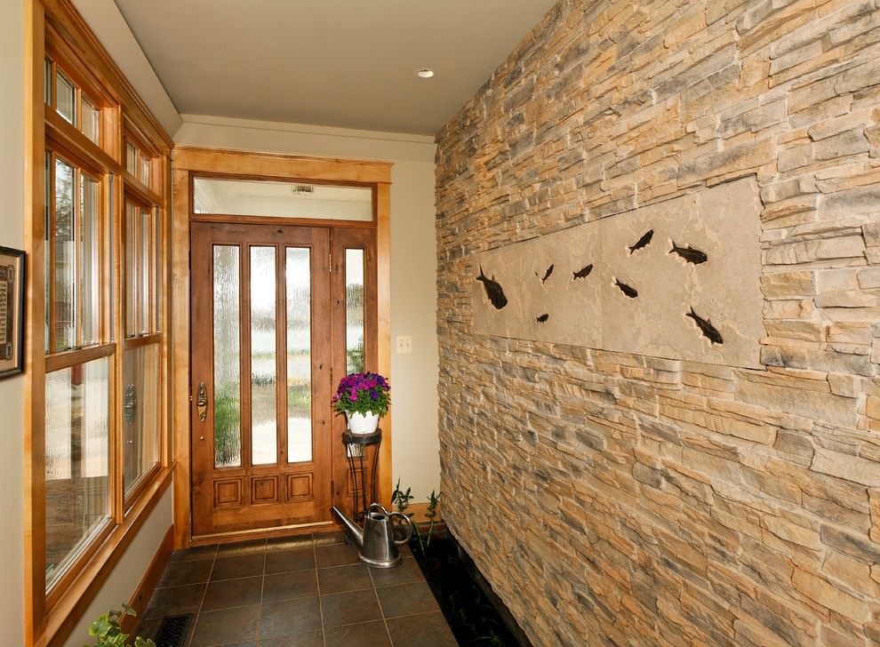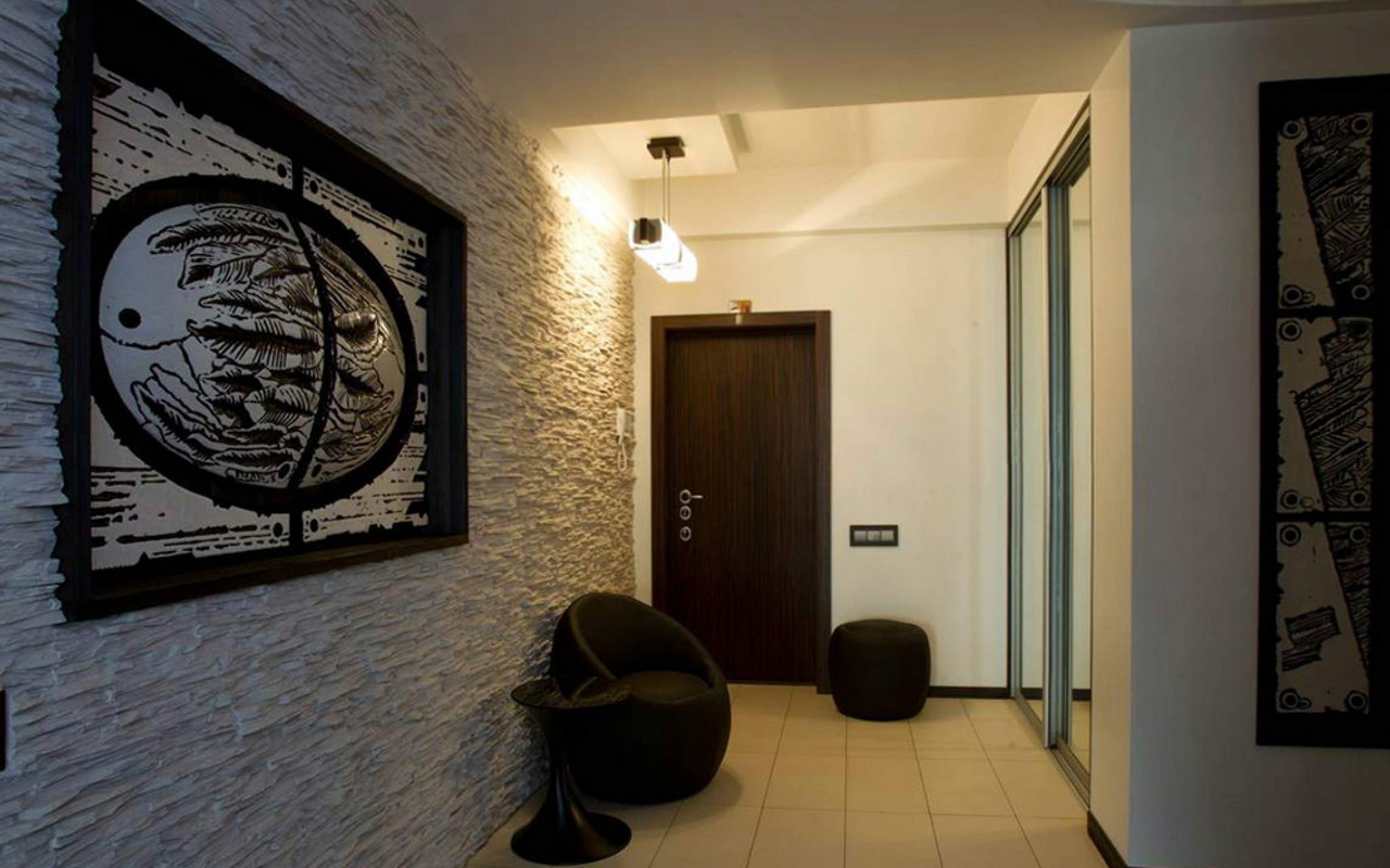 La maison commence par le hall d'entrée, la décoration intérieure en pierre deviendra une solution élégante et insolite.